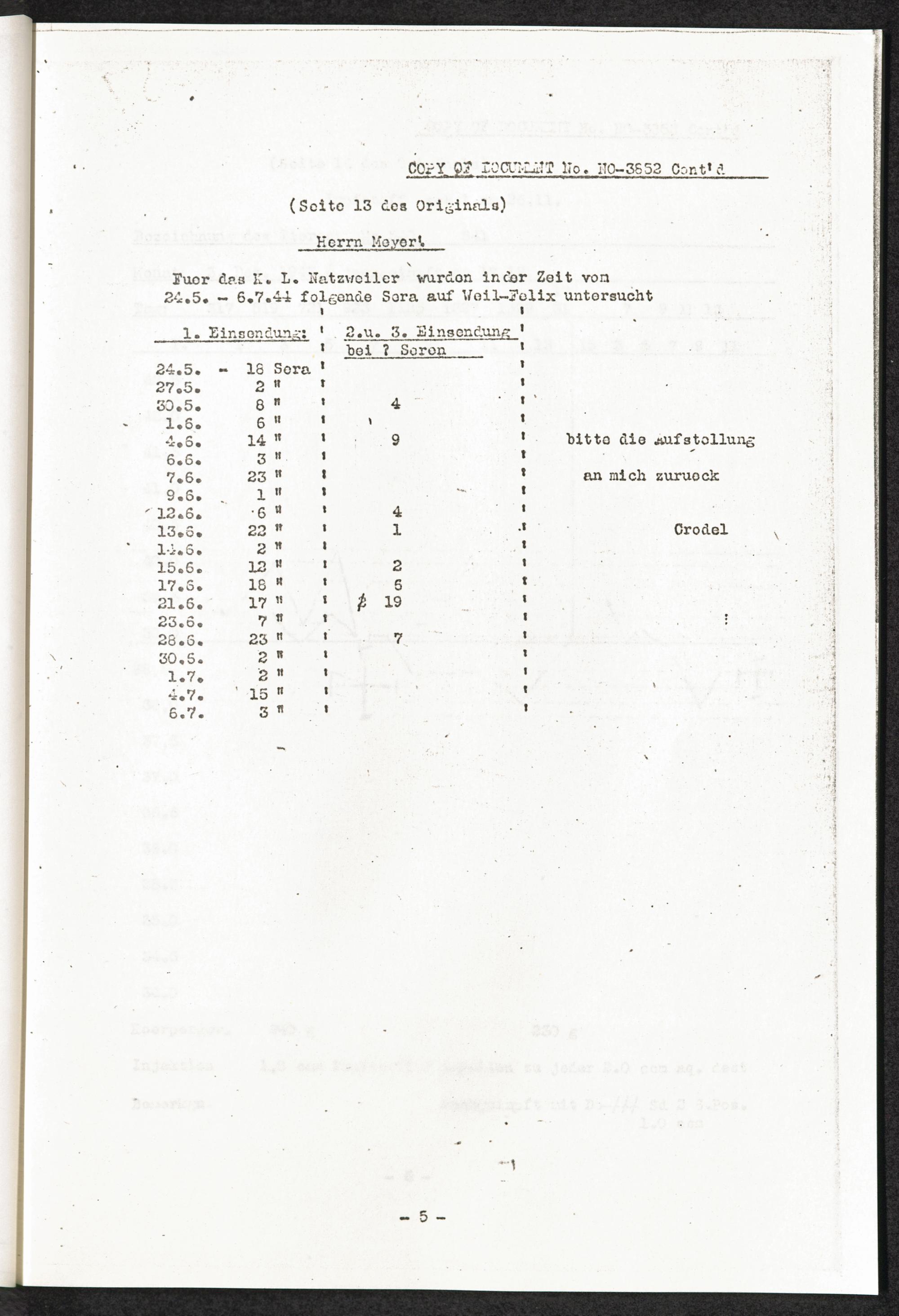 Pseudo-medizinische Versuche im Sicherungslager Vorbruck-Schirmeck und KL Natzwe... "Fleckfieber" Anlage Nr. 4