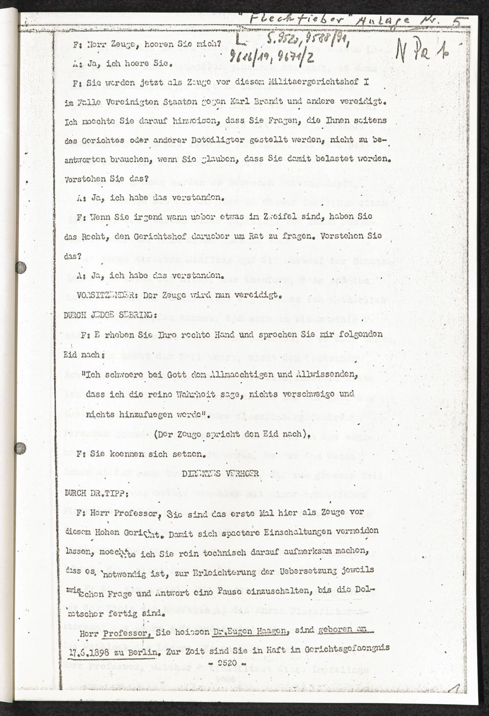 Pseudo-medizinische Versuche im Sicherungslager Vorbruck-Schirmeck und KL Natzwe... "Fleckfieber" Anlage Nr. 5