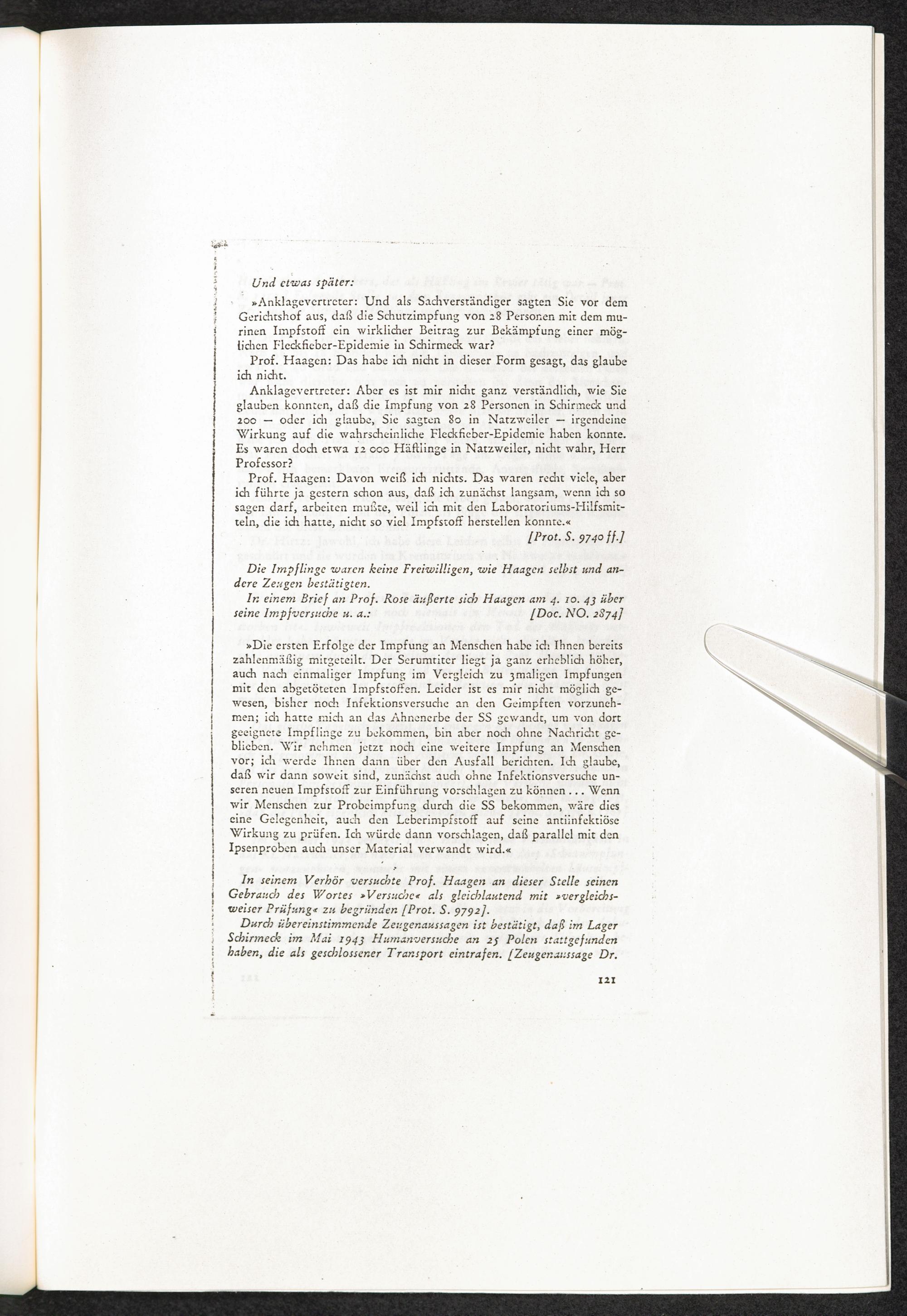 Pseudo-medizinische Versuche im Sicherungslager Vorbruck-Schirmeck und KL Natzwe... Fleckfieber Anlage Nr. 8