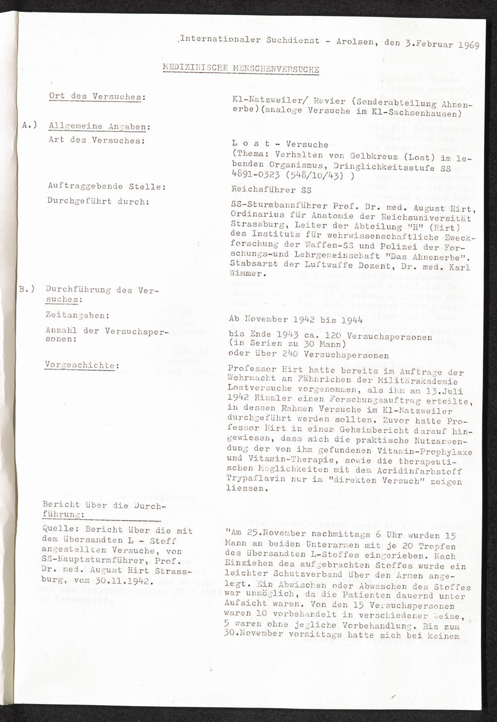 Pseudo-medizinische Versuche im KL Natzweiler : Lost-Versuche / Internationaler Suchdienst