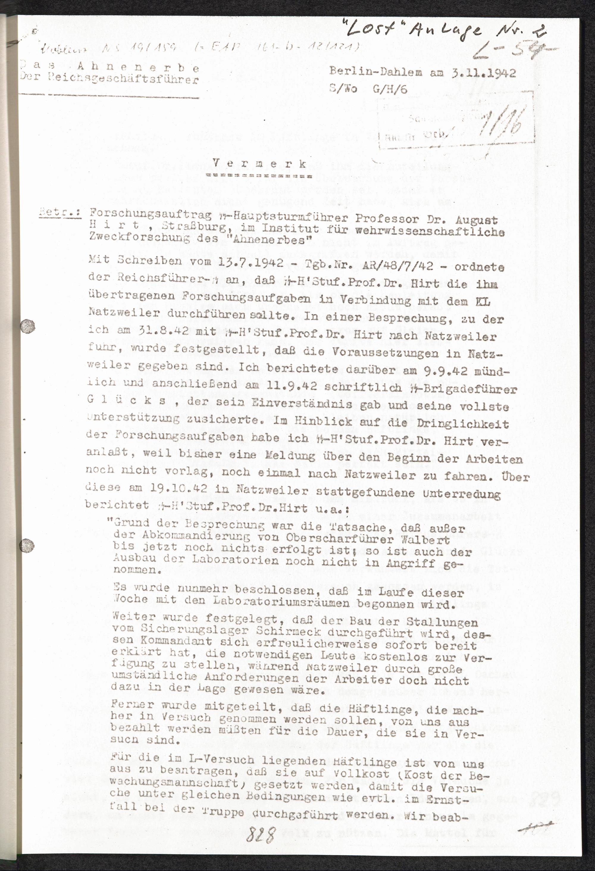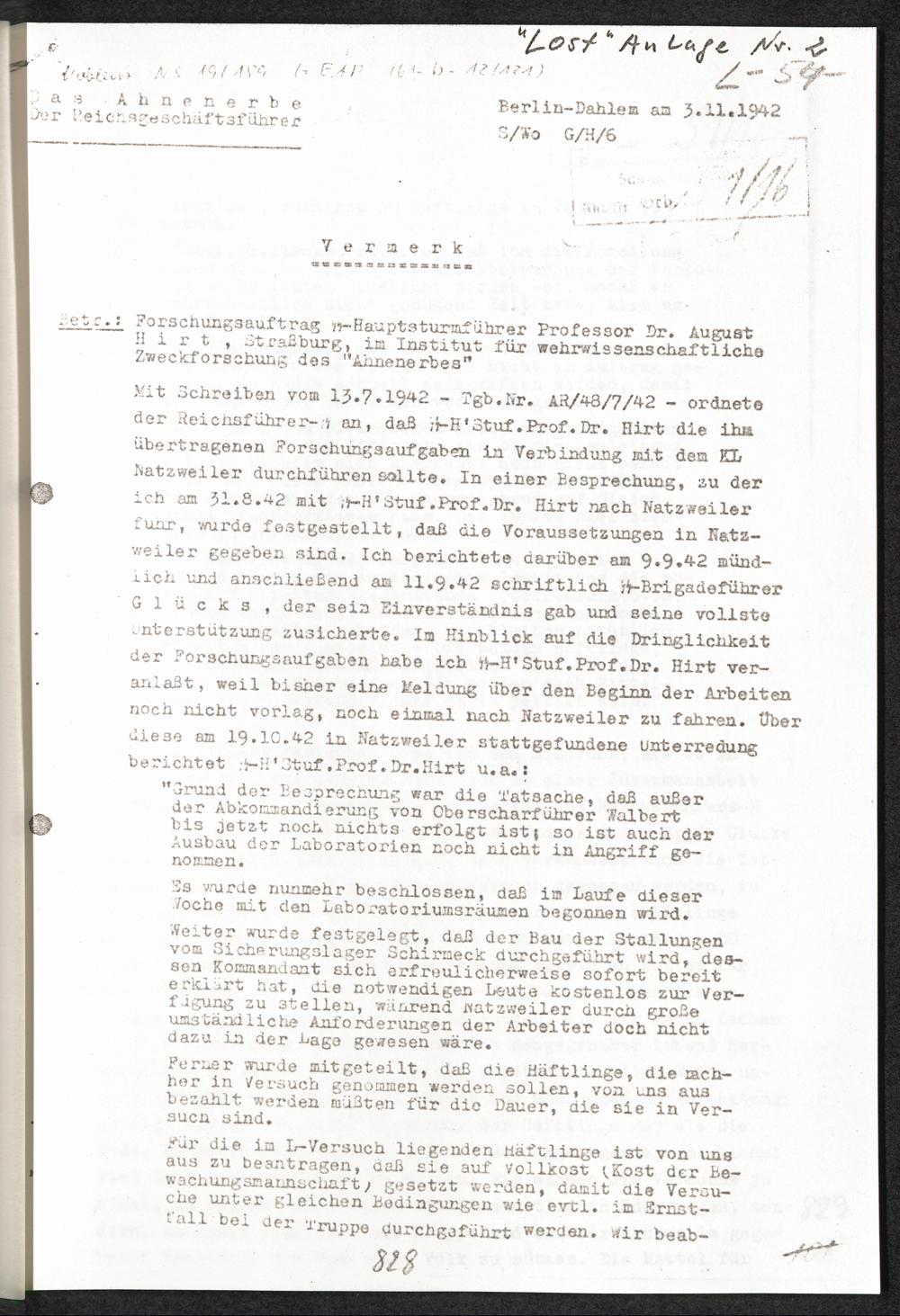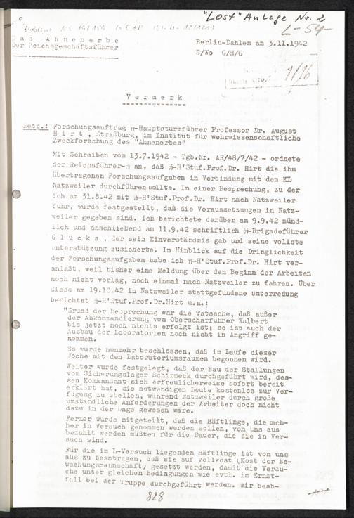 Pseudo-medizinische Versuche im KL Natzweiler "Lost" Anlage Nr. 2