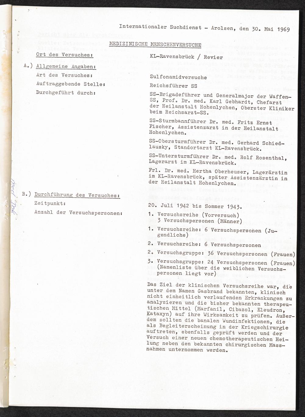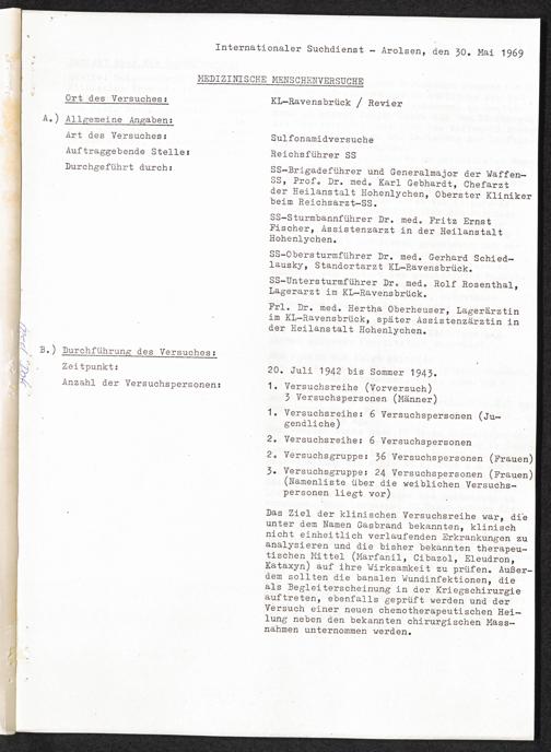 Pseudo-medizinische Versuche im KL Ravensbrück : Sulfonamidversuche / Internationaler Suchdienst