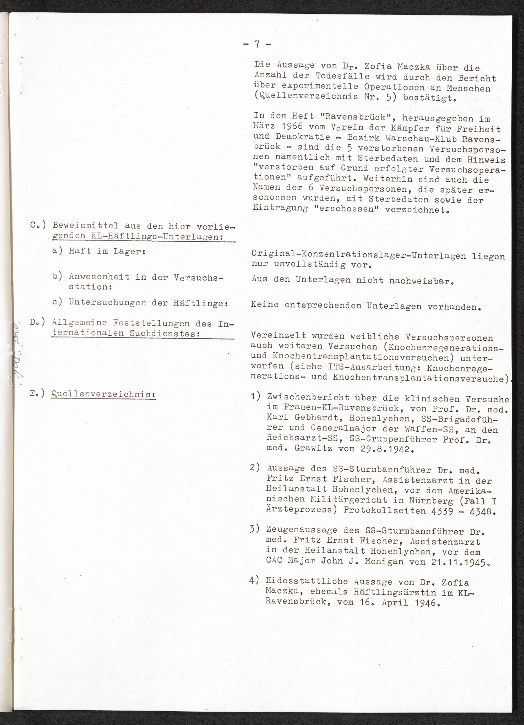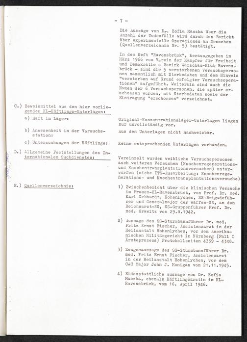 Pseudo-medizinische Versuche im KL Ravensbrück : Sulfonamidversuche / Internationaler Suchdienst