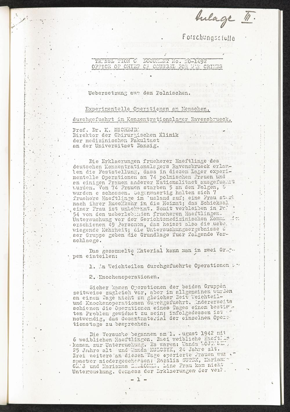 Pseudo-medizinische Versuche im KL Ravensbrück : Muskel- und Nervenregenerationsversuche / Internationaler Suchdienst