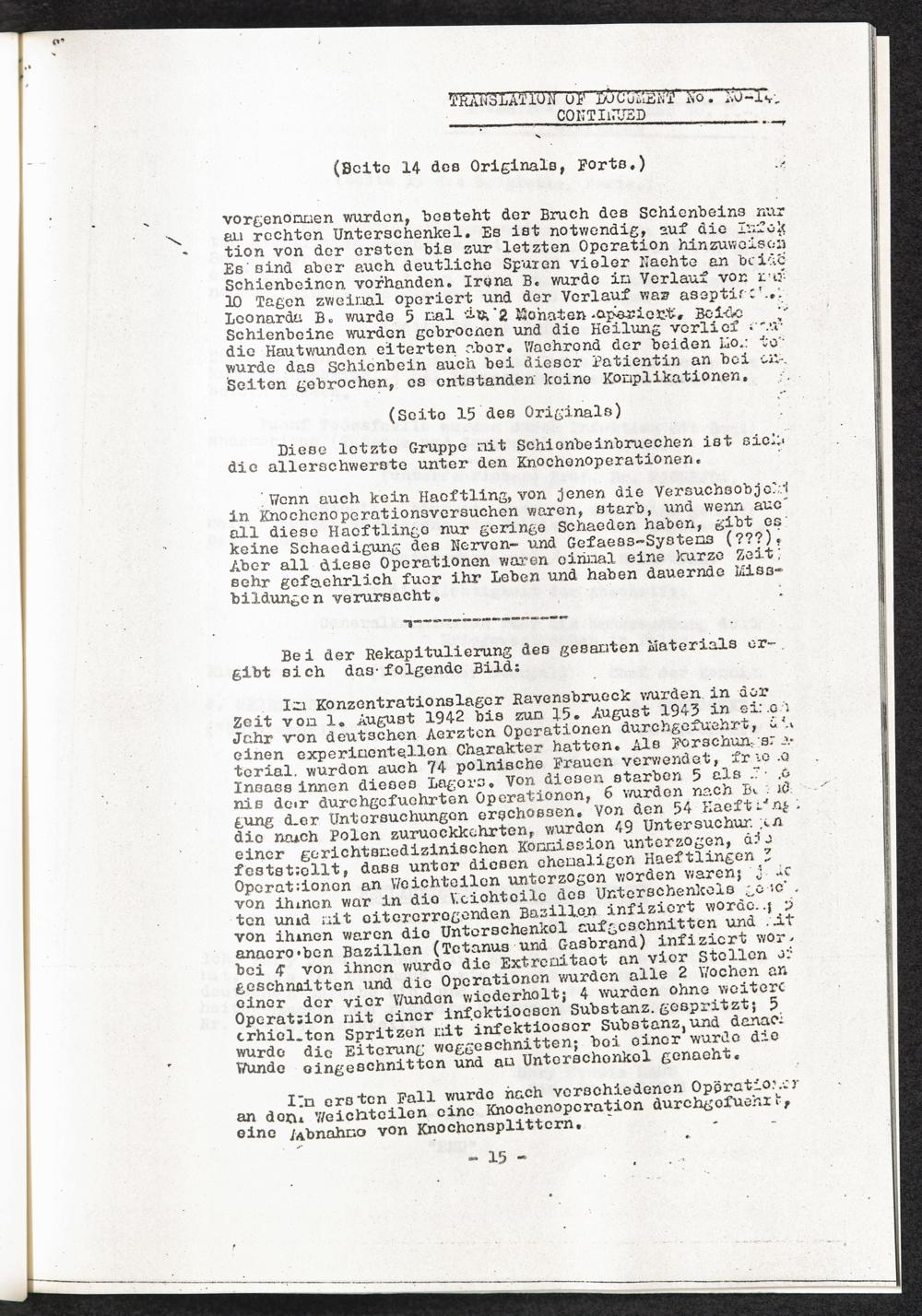 Pseudo-medizinische Versuche im KL Ravensbrück : Knochenregenerations- und Knochentransplantationsversuche / Internationaler Suchdienst