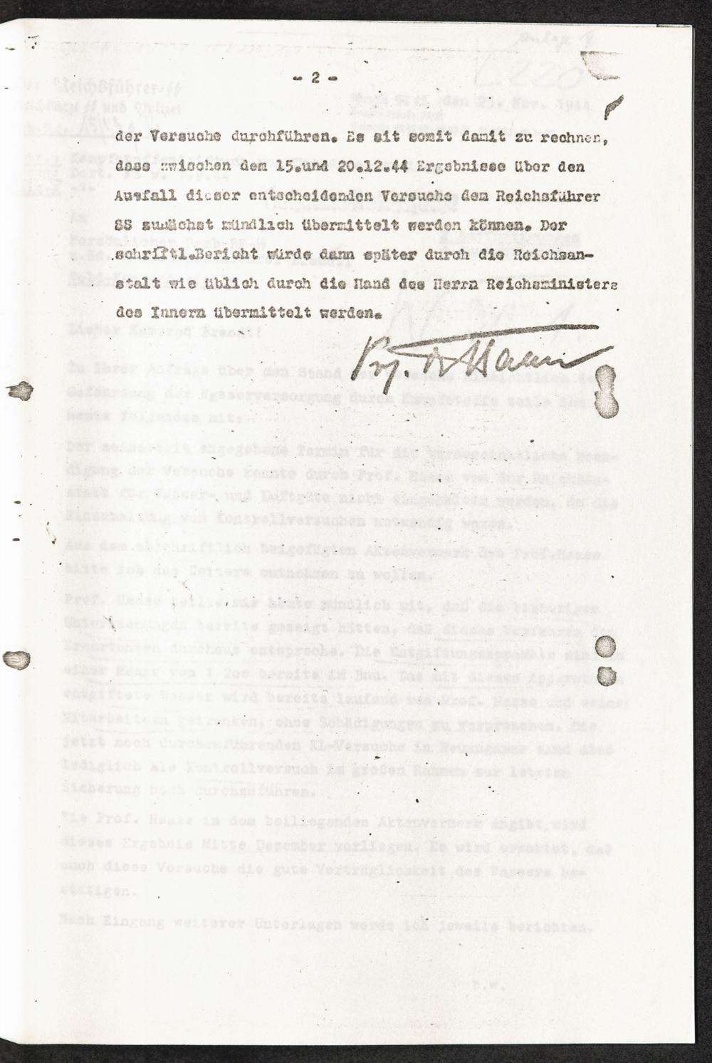 Pseudo-medizinische Versuche im KL Neuengamme : Entgiftung des durch Kampfstoffe verseuchten Trinkwassers / Internationaler Suchdienst