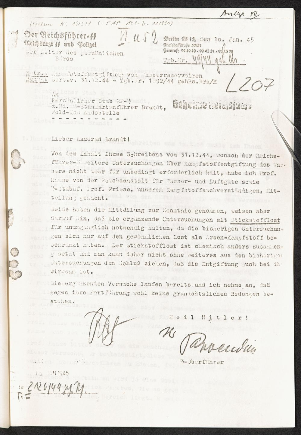 Pseudo-medizinische Versuche im KL Neuengamme : Entgiftung des durch Kampfstoffe verseuchten Trinkwassers / Internationaler Suchdienst