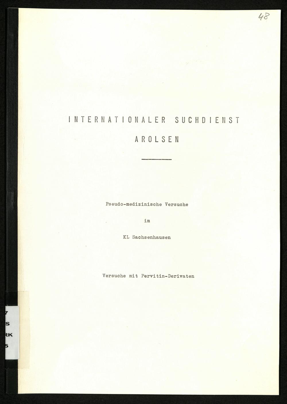 Pseudo-medizinische Versuche im KL Sachsenhausen : Versuche mit Pervitin-Derivaten / Internationaler Suchdienst