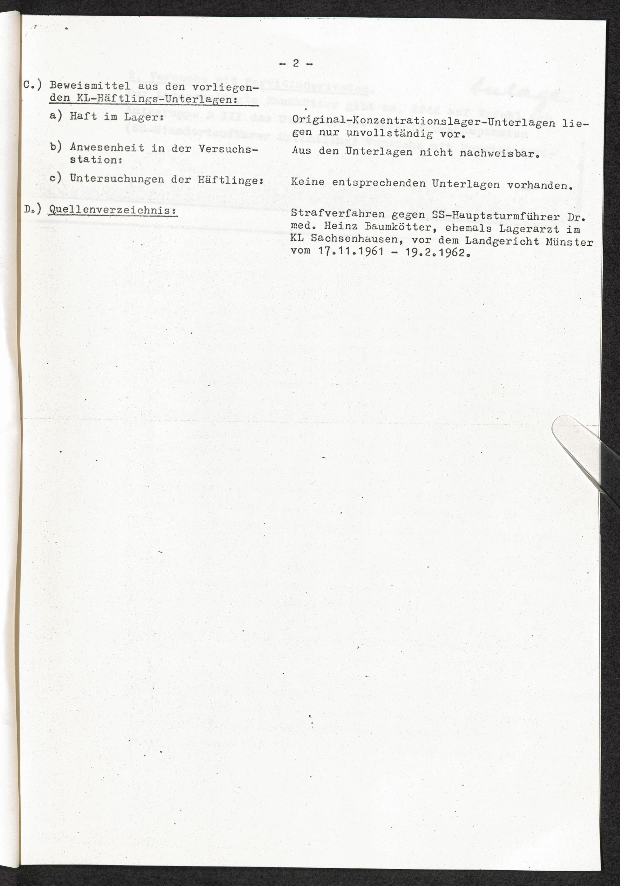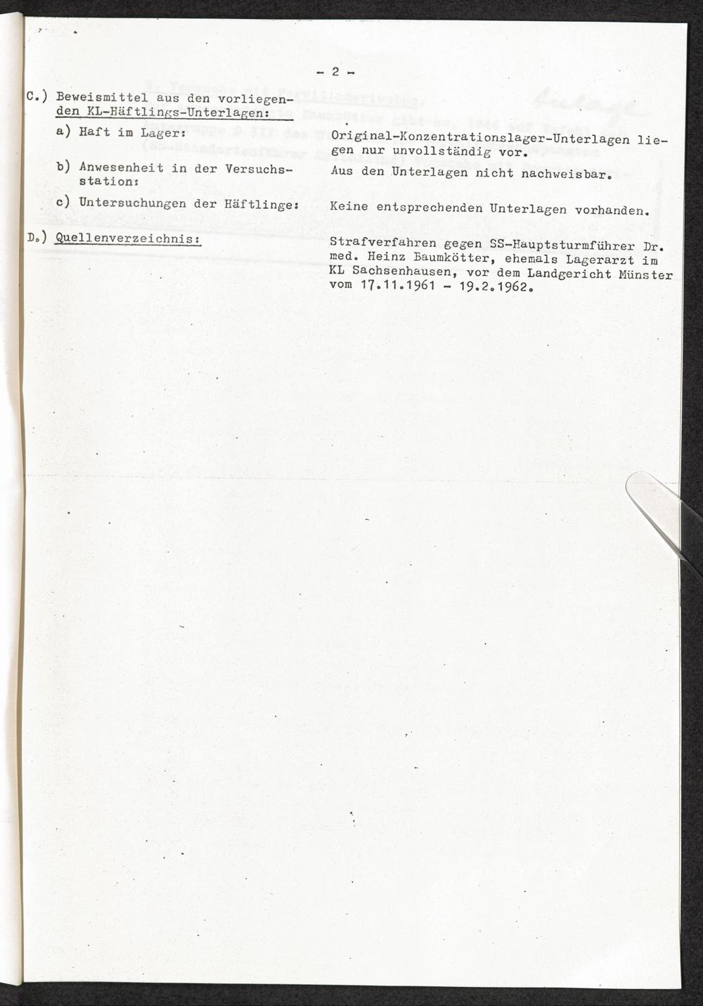 Pseudo-medizinische Versuche im KL Sachsenhausen : Versuche mit Pervitin-Derivaten / Internationaler Suchdienst