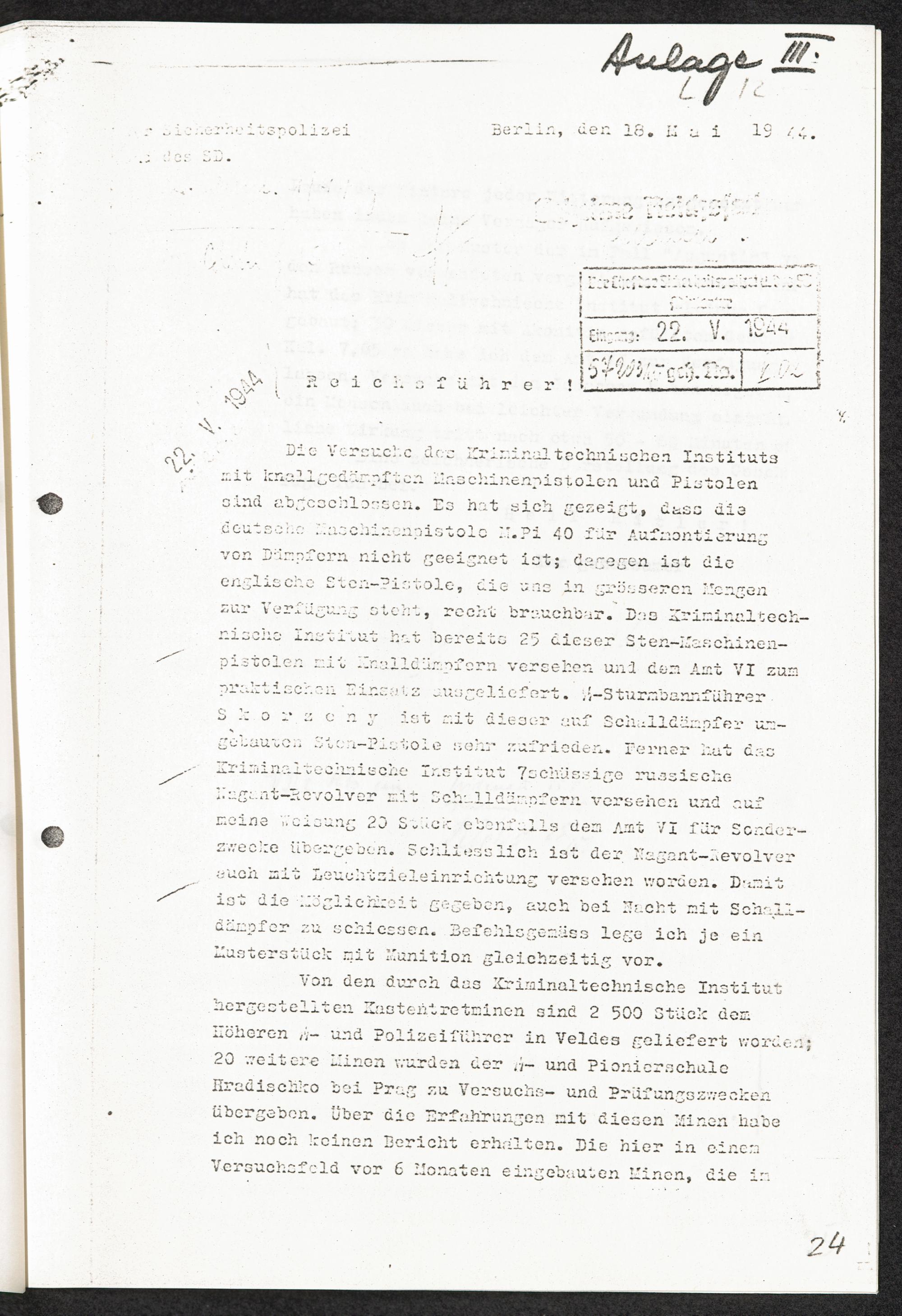 Pseudo-medizinische Versuche im KL Sachsenhausen : Versuche mit Akonitinnitrat-Geschossen / Internationaler Suchdienst