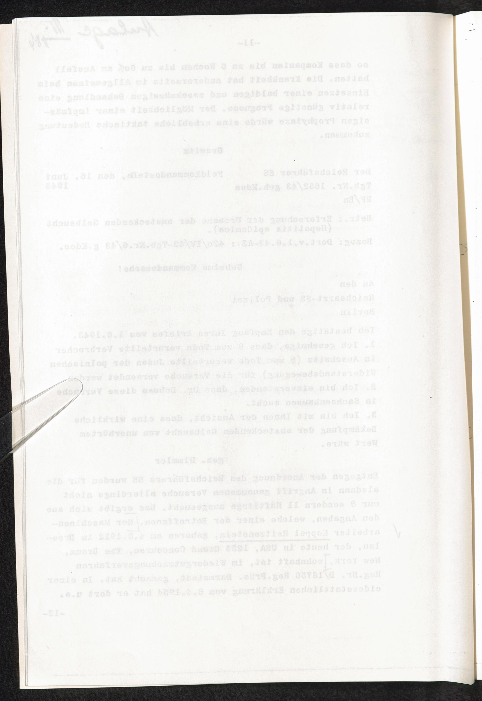 Pseudo-medizinische Versuche im KL Sachsenhausen : Versuche zur Erforschung der Ursache der ansteckenden Gelbsucht (Hepatitis epidemica) / Internationaler Suchdienst (ITS)
