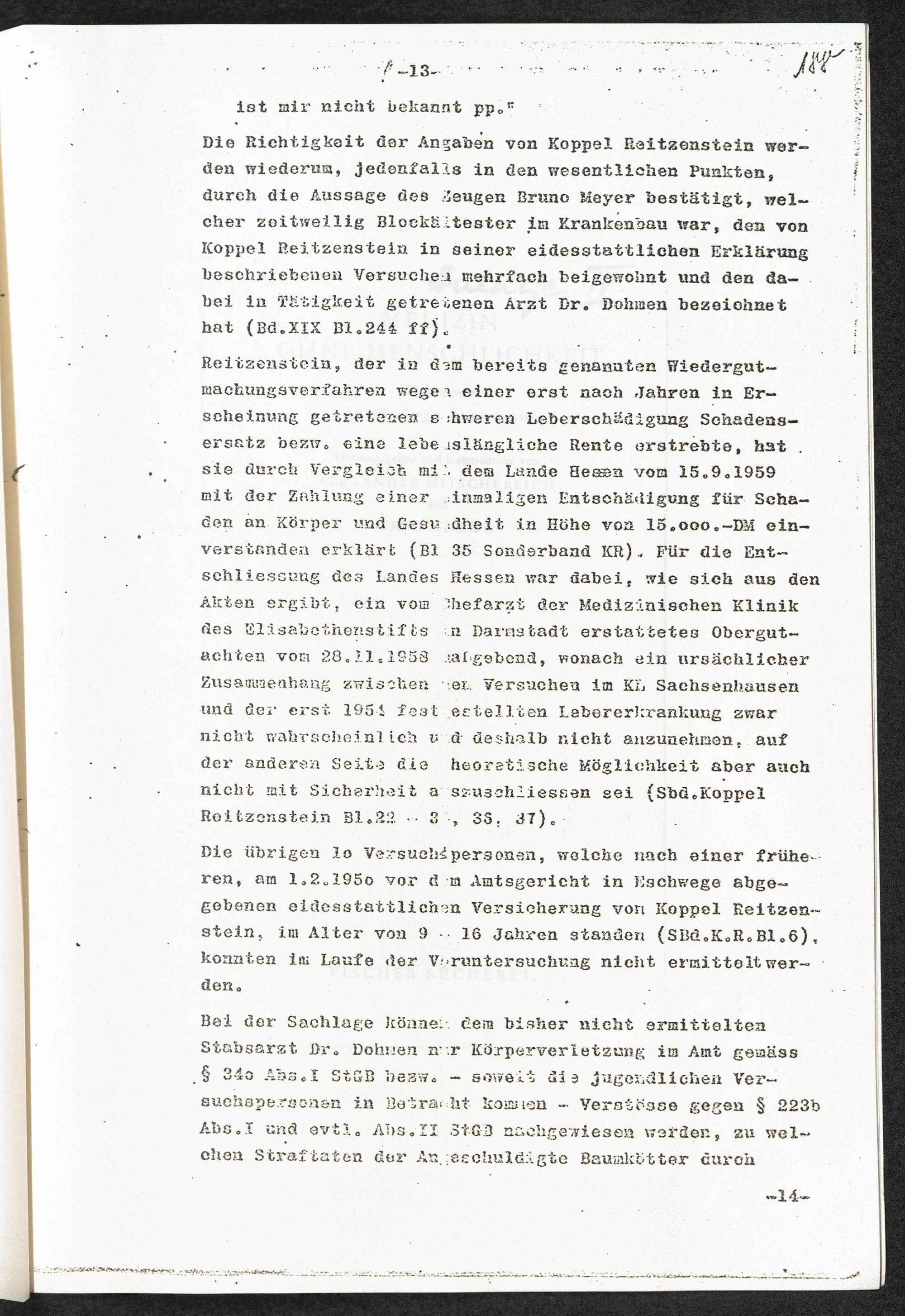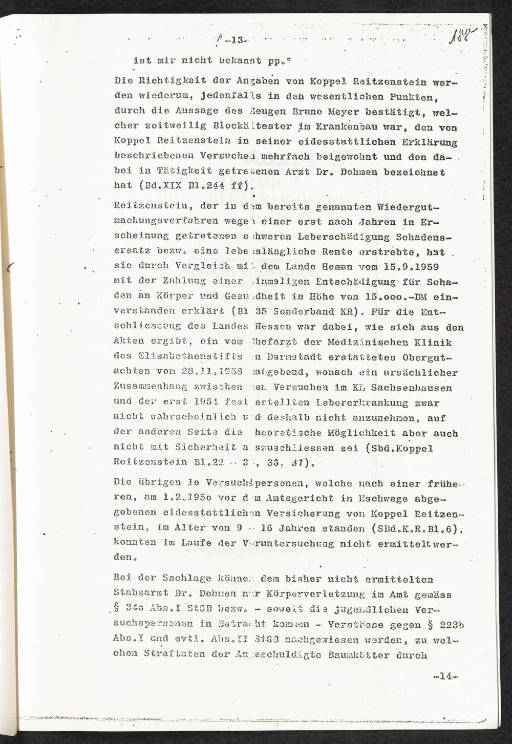 Pseudo-medizinische Versuche im KL Sachsenhausen : Versuche zur Erforschung der Ursache der ansteckenden Gelbsucht (Hepatitis epidemica) / Internationaler Suchdienst (ITS)