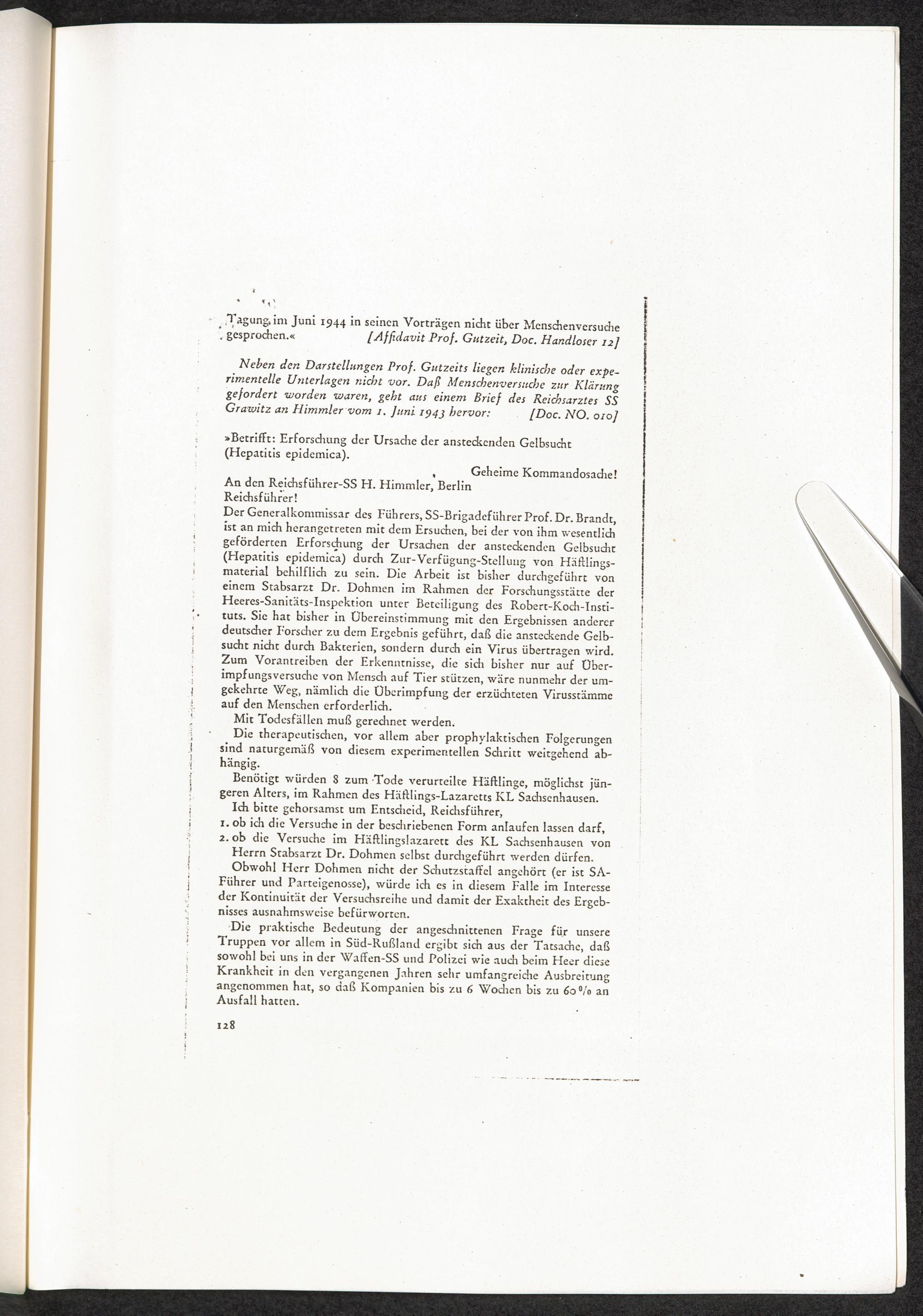 Pseudo-medizinische Versuche im KL Sachsenhausen : Versuche zur Erforschung der Ursache der ansteckenden Gelbsucht (Hepatitis epidemica) / Internationaler Suchdienst (ITS)