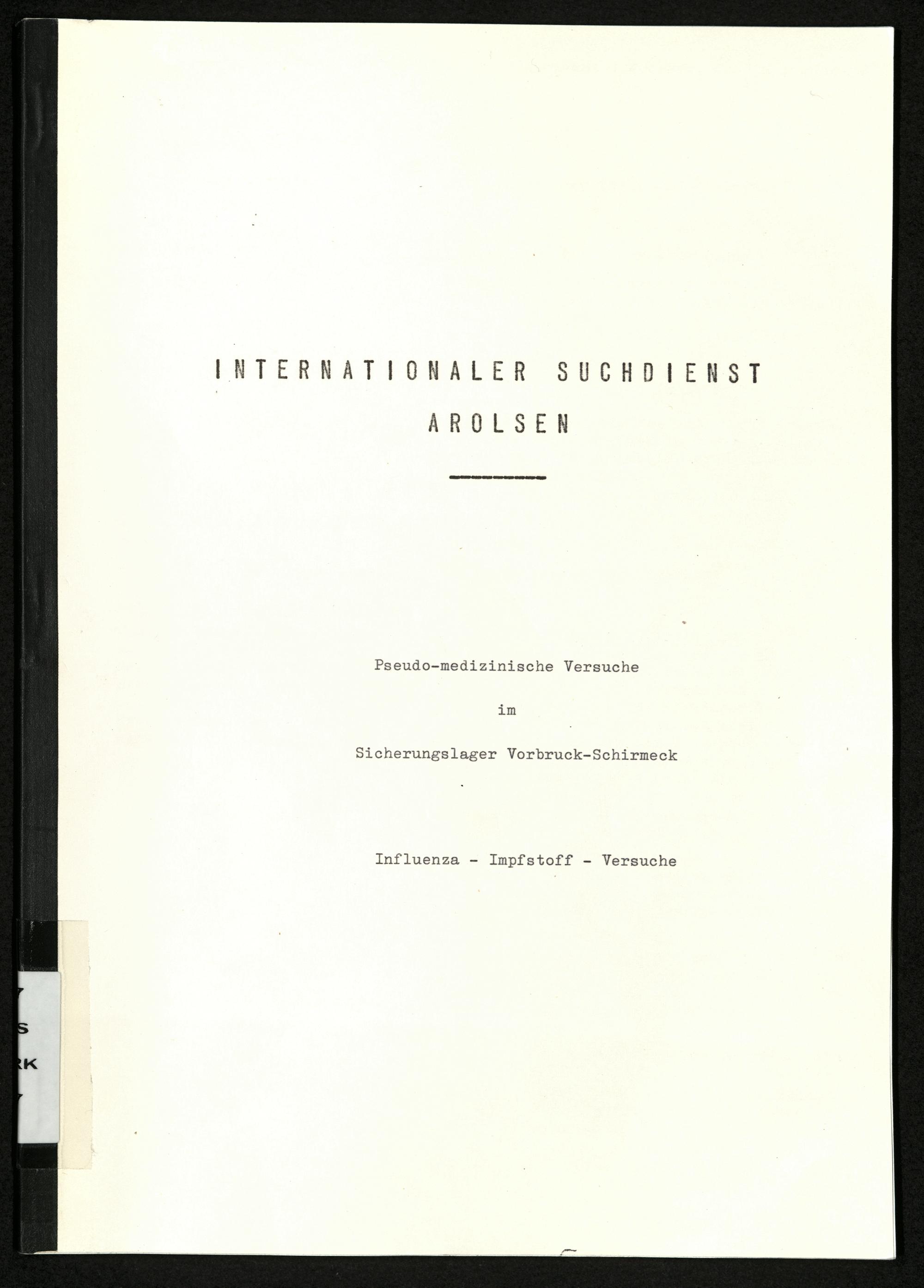 Pseudo-medizinische Versuche im Sicherungslager Vorbruck-Schirmeck : Influenza - Impfstoff - Versuche / Internationaler Suchdienst