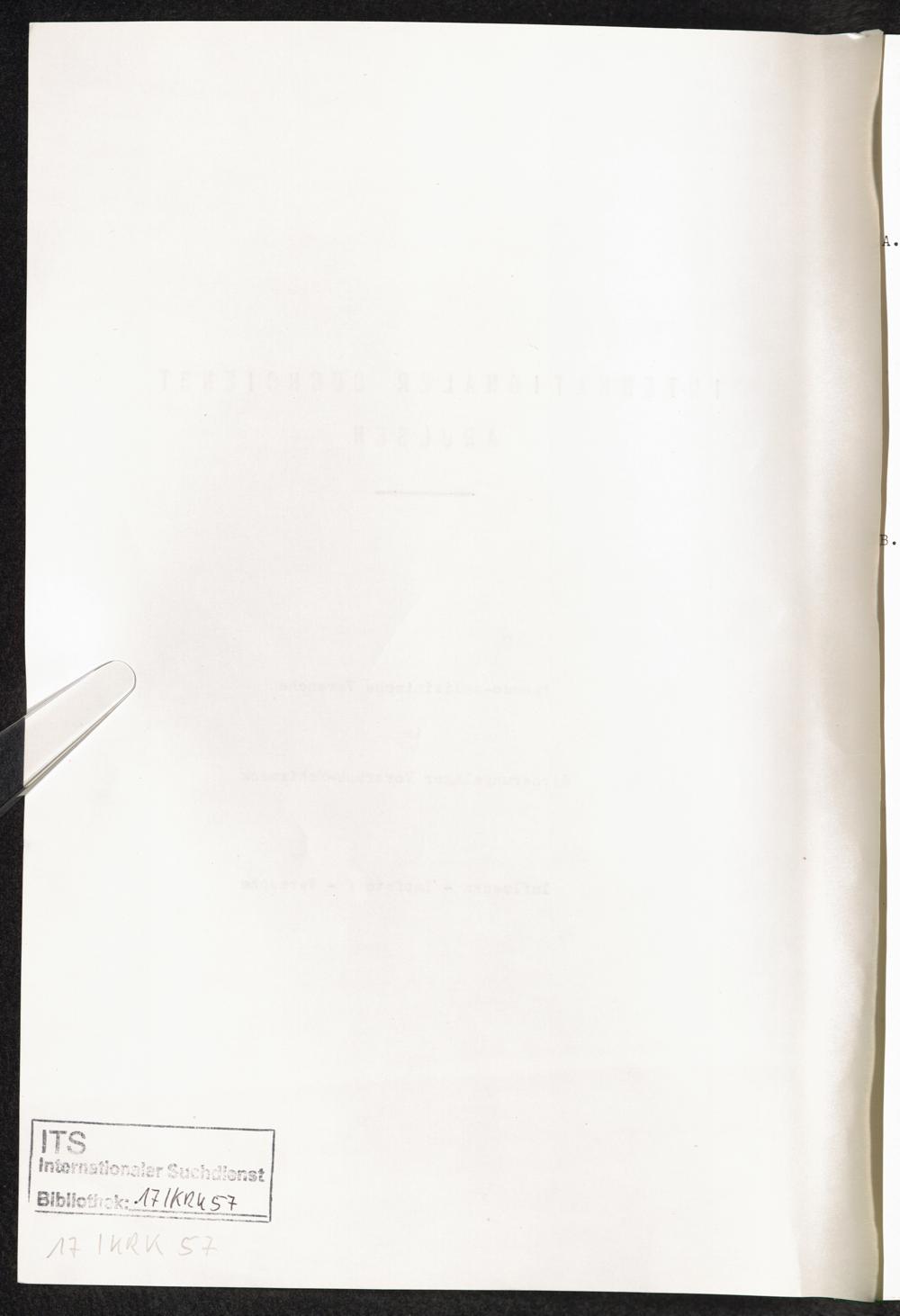 Pseudo-medizinische Versuche im Sicherungslager Vorbruck-Schirmeck : Influenza - Impfstoff - Versuche / Internationaler Suchdienst