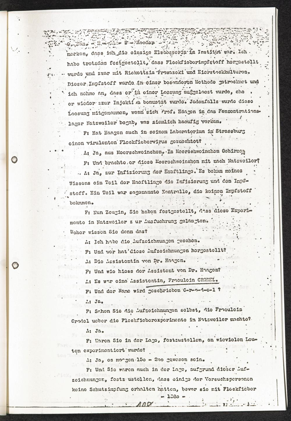 Pseudo-medizinische Versuche im Sicherungslager Vorbruck-Schirmeck "Influenza" Anlage Nr. 4