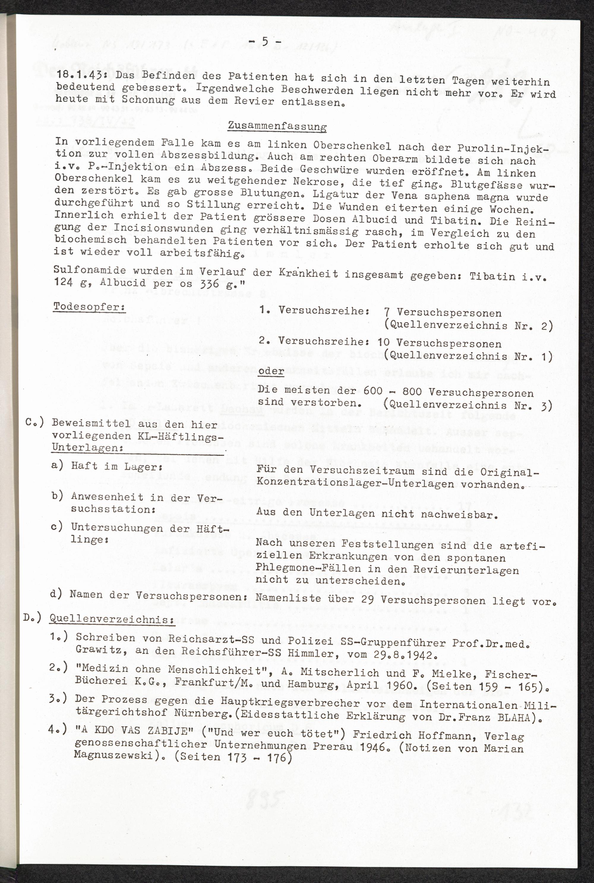 Pseudo-medizinische Versuche im KL Dachau : Phlegmone-Versuche / Internationaler Suchdienst