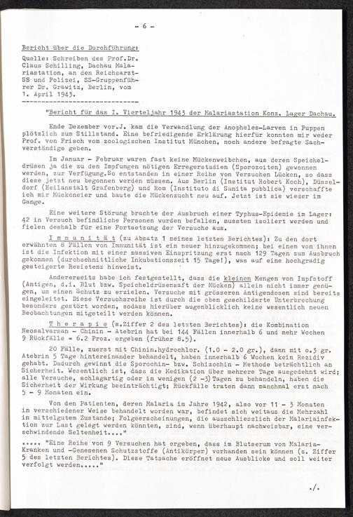 Pseudo-medizinische Versuche im KL Dachau Medizinische Menschenversuche: Malaria-Versuche