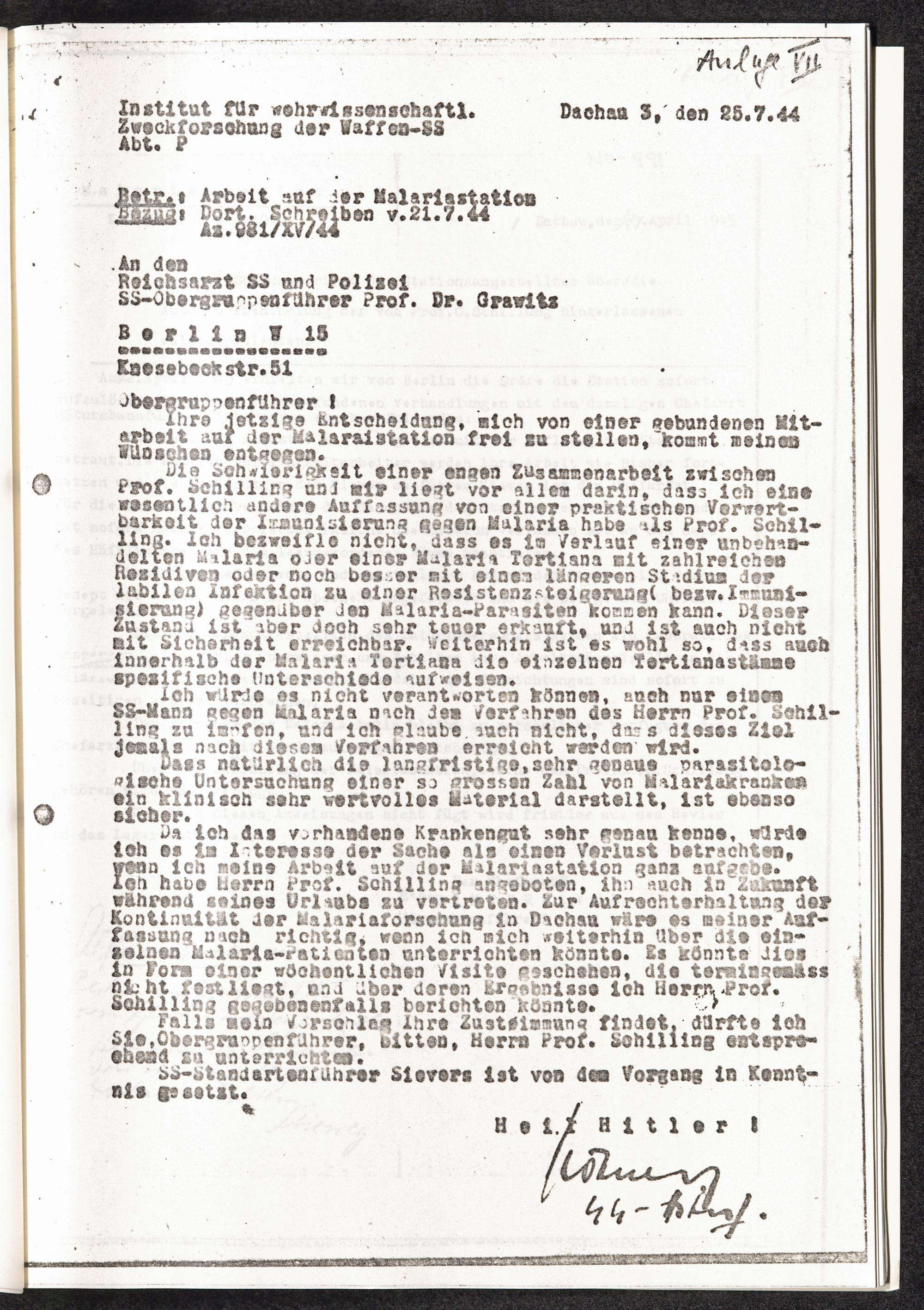 Pseudo-medizinische Versuche im KL Dachau Anlage VII: Abschrift.