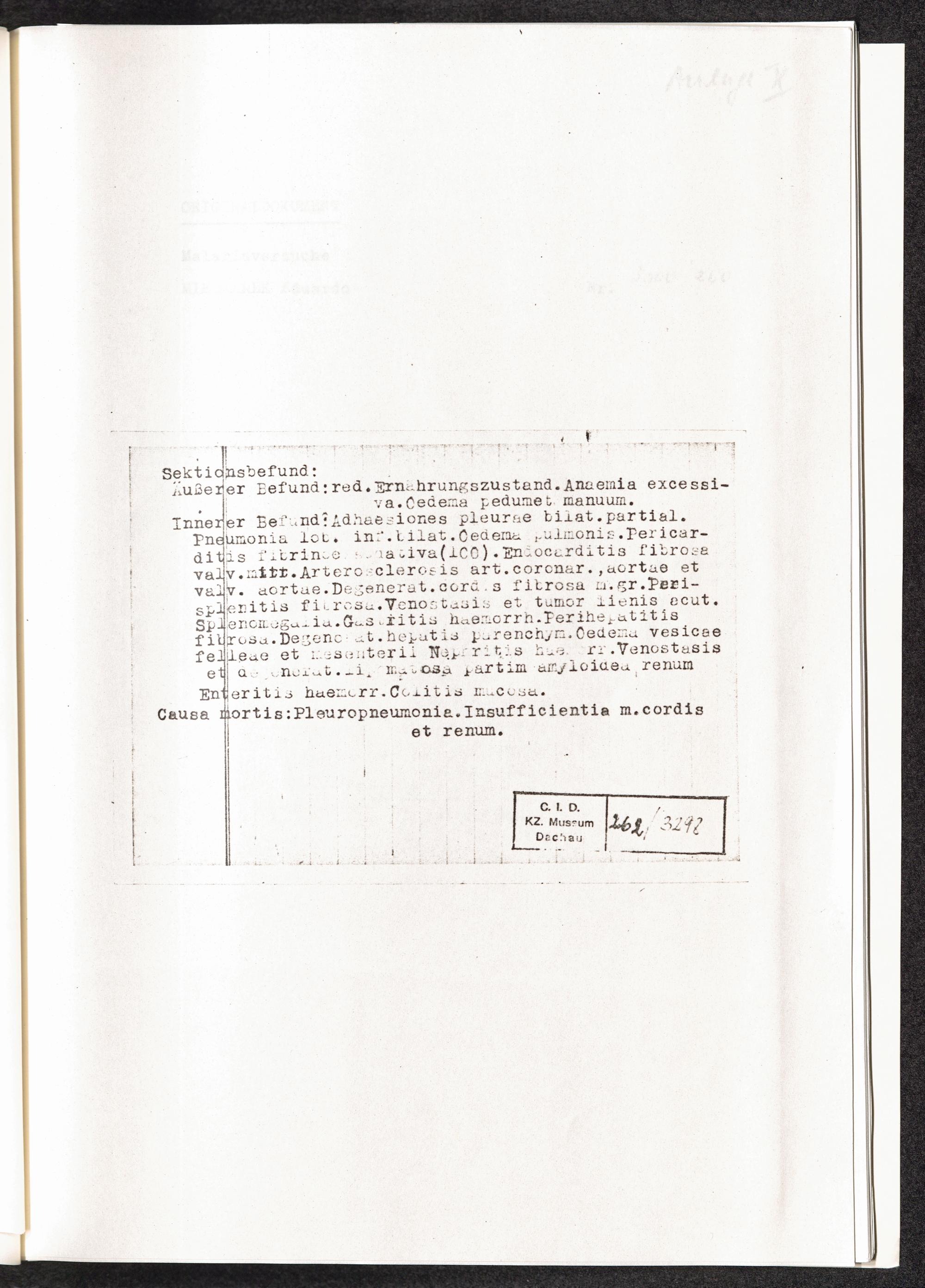 PDF  Anlage X: Originaldokument: Malariaversuche. Mielkarek Eduardo