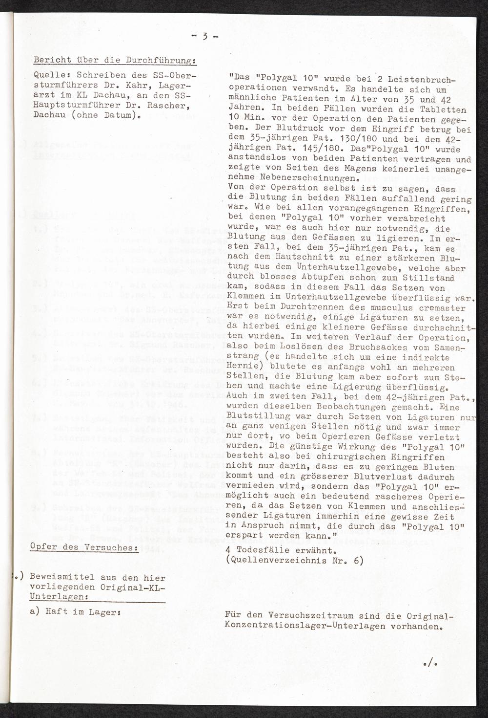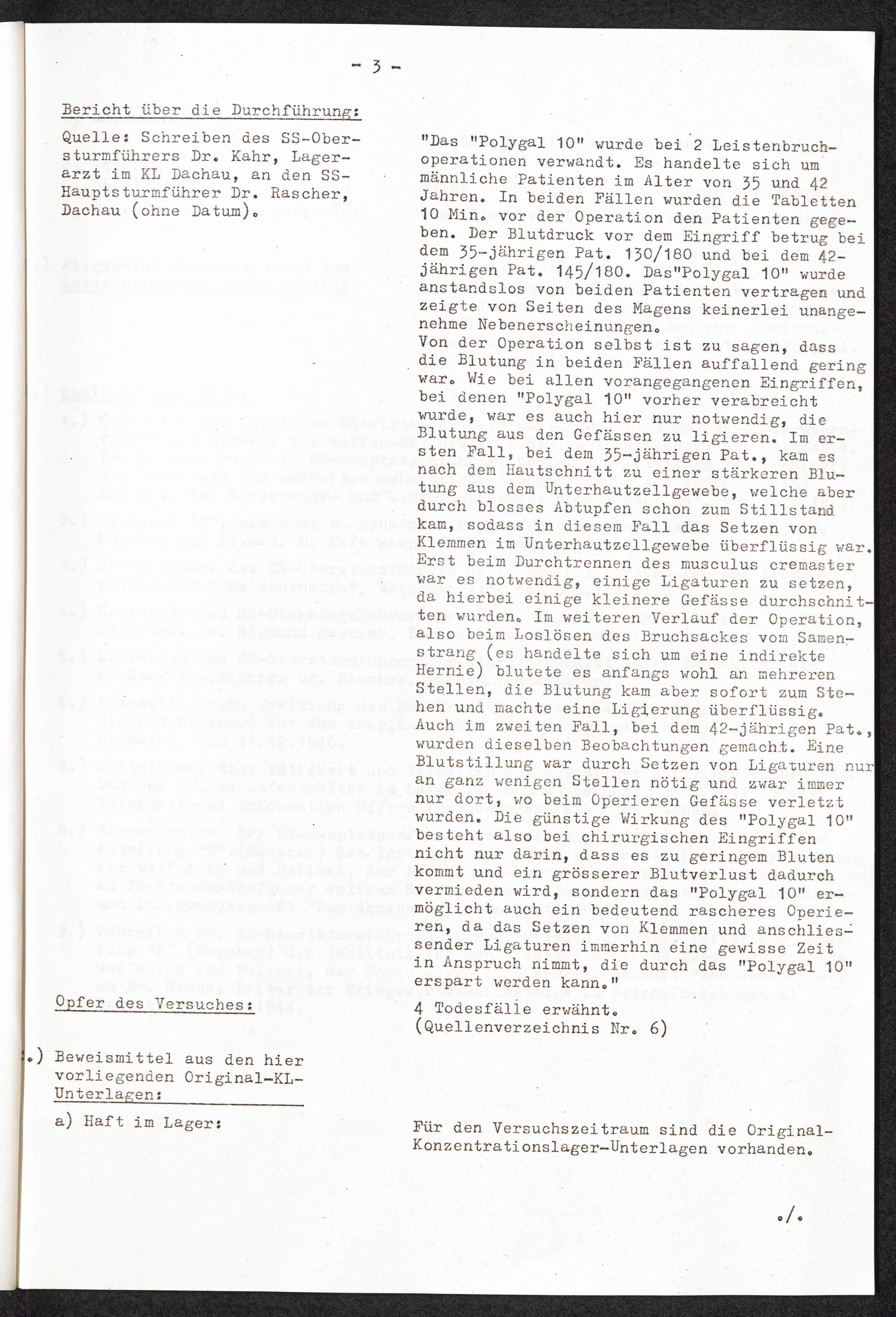 Pseudo-medizinische Versuche im KL Dachau : Erprobung des Blutstillmittels "Polygal 10" / Internationaler Suchdienst