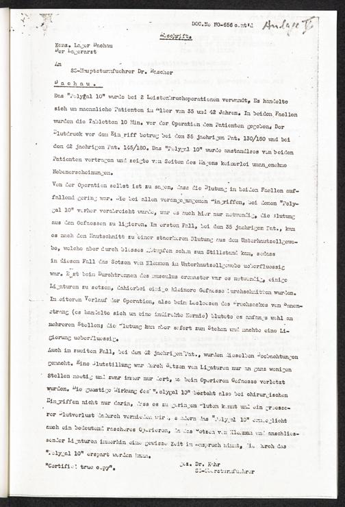 Pseudo-medizinische Versuche im KL Dachau : Erprobung des Blutstillmittels "Polygal 10" / Internationaler Suchdienst