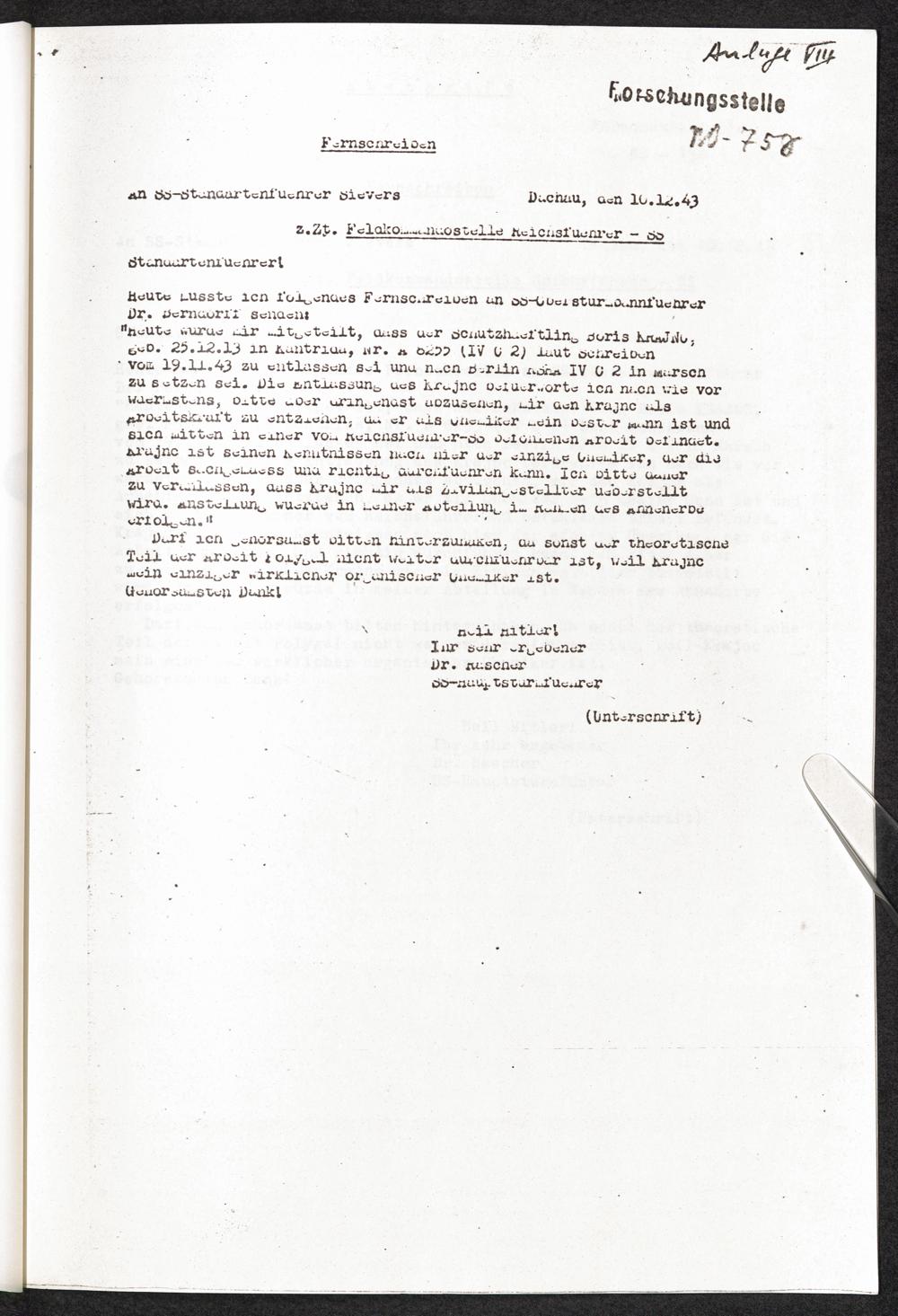 Pseudo-medizinische Versuche im KL Dachau : Erprobung des Blutstillmittels "Polygal 10" / Internationaler Suchdienst