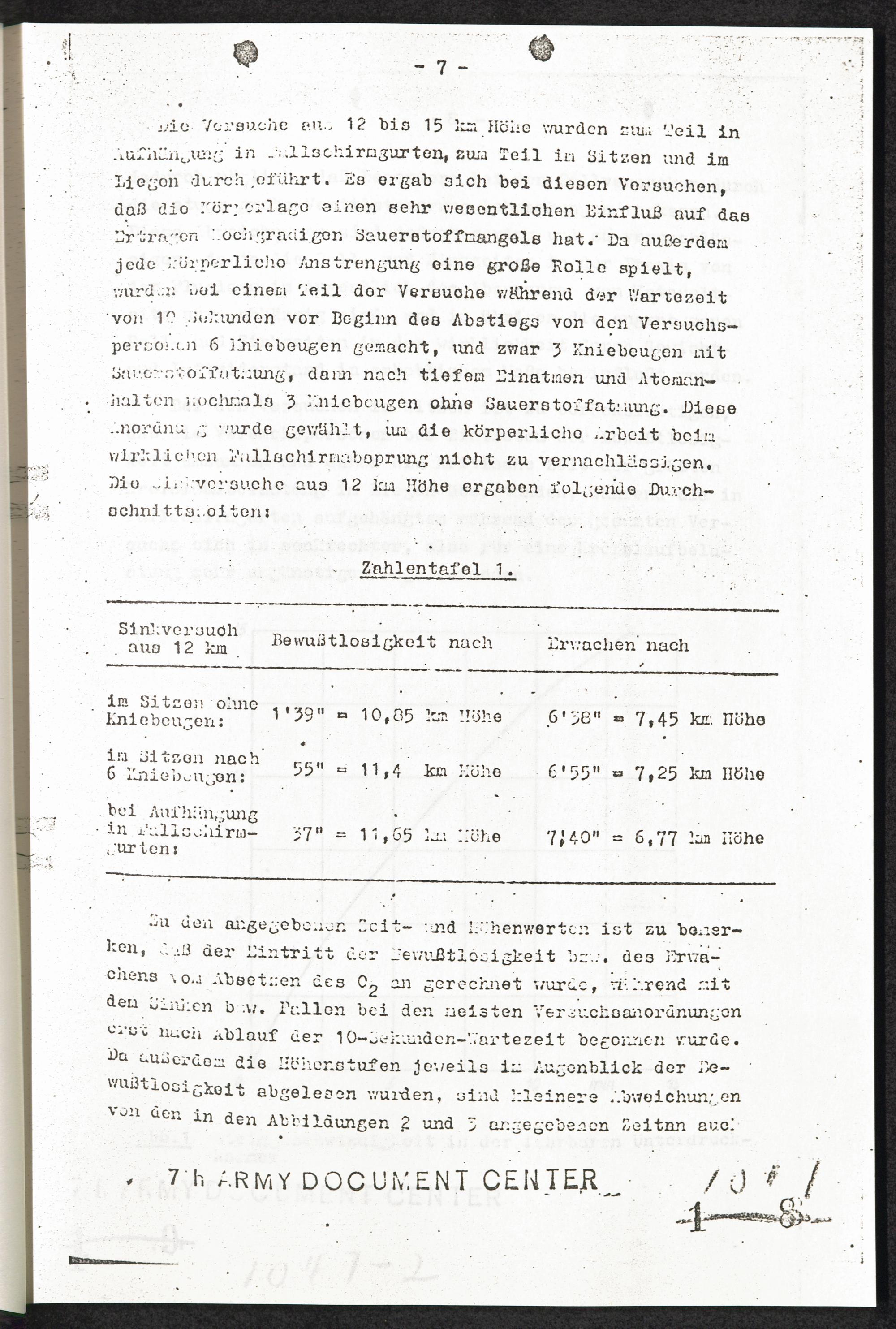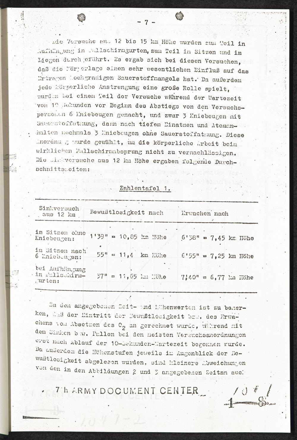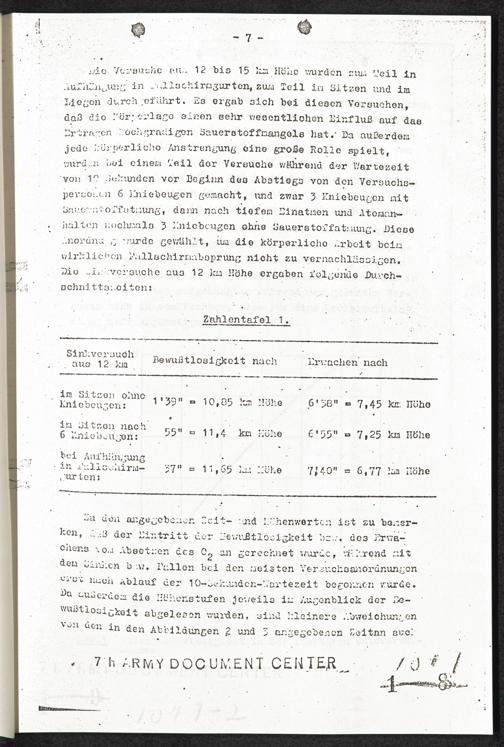Pseudo-medizinische Versuche im KL Dachau : Versuche zur Rettung aus grossen Höhen (Unterdruckversuche) / Internationaler Suchdienst (ITS)