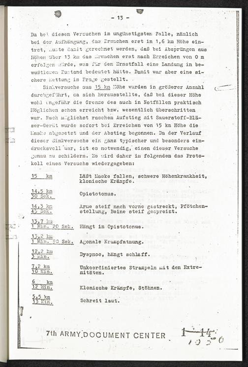 Pseudo-medizinische Versuche im KL Dachau : Versuche zur Rettung aus grossen Höhen (Unterdruckversuche) / Internationaler Suchdienst (ITS)