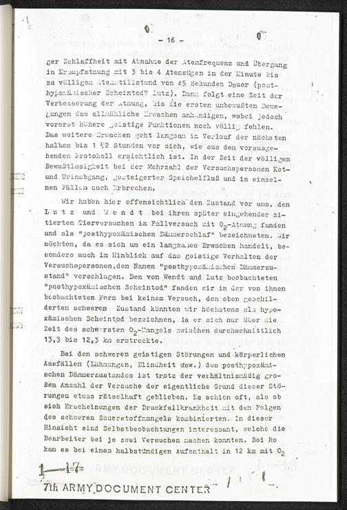 Pseudo-medizinische Versuche im KL Dachau : Versuche zur Rettung aus grossen Höhen (Unterdruckversuche) / Internationaler Suchdienst (ITS)