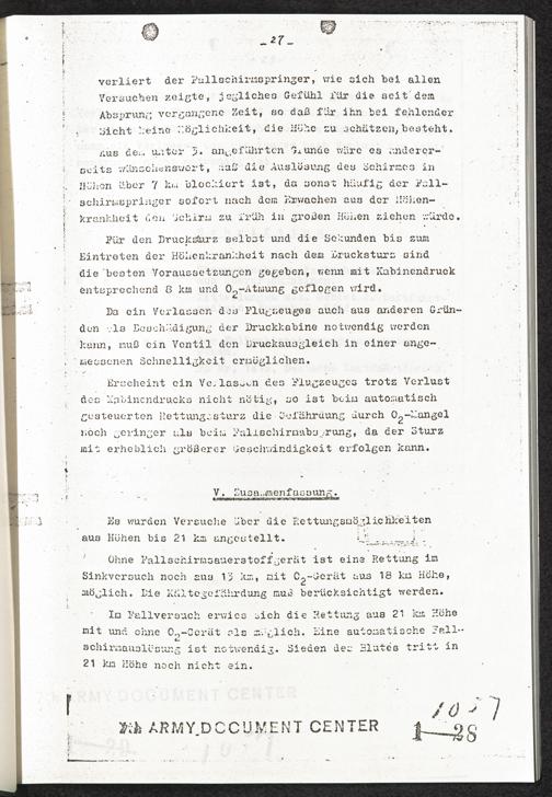 Pseudo-medizinische Versuche im KL Dachau : Versuche zur Rettung aus grossen Höhen (Unterdruckversuche) / Internationaler Suchdienst (ITS)
