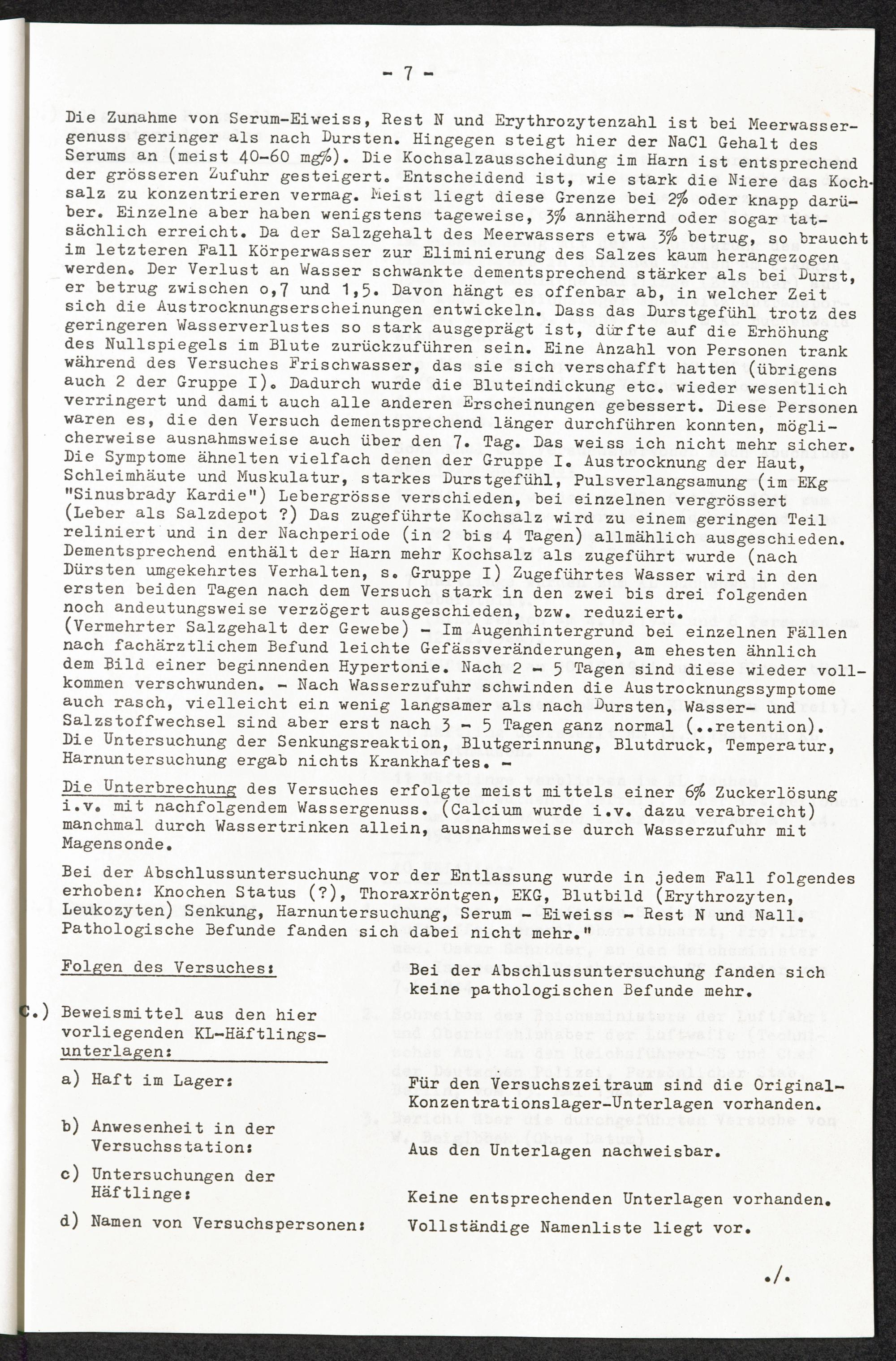Pseudo-medizinische Versuche im KL Dachau : Versuche zur Trinkbarmachung von Meerwasser / Internationaler Suchdienst