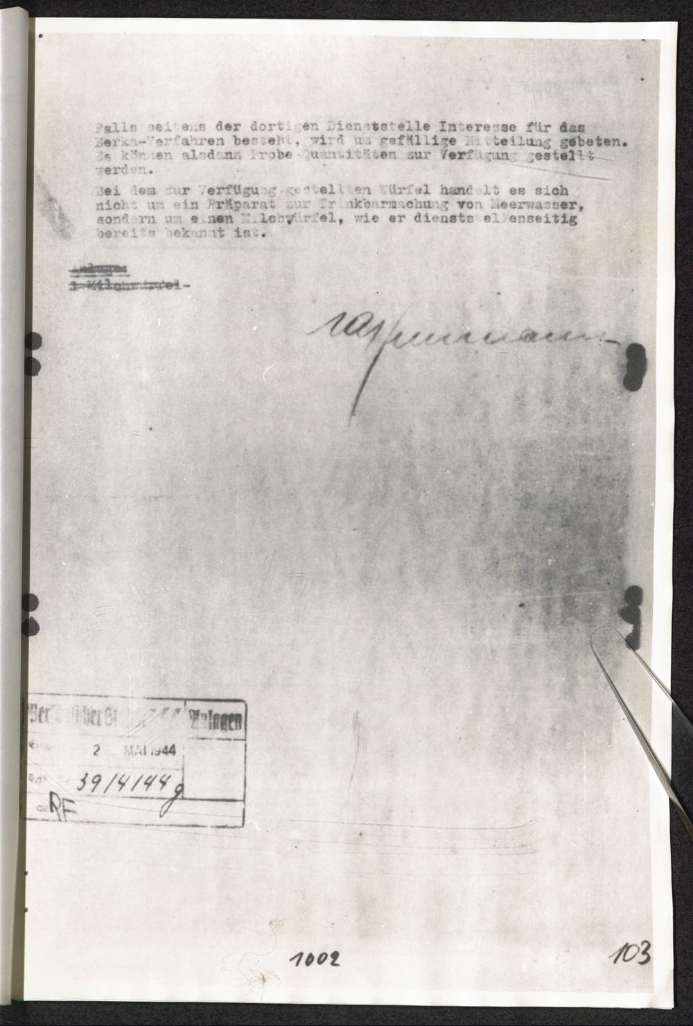Pseudo-medizinische Versuche im KL Dachau : Versuche zur Trinkbarmachung von Meerwasser / Internationaler Suchdienst