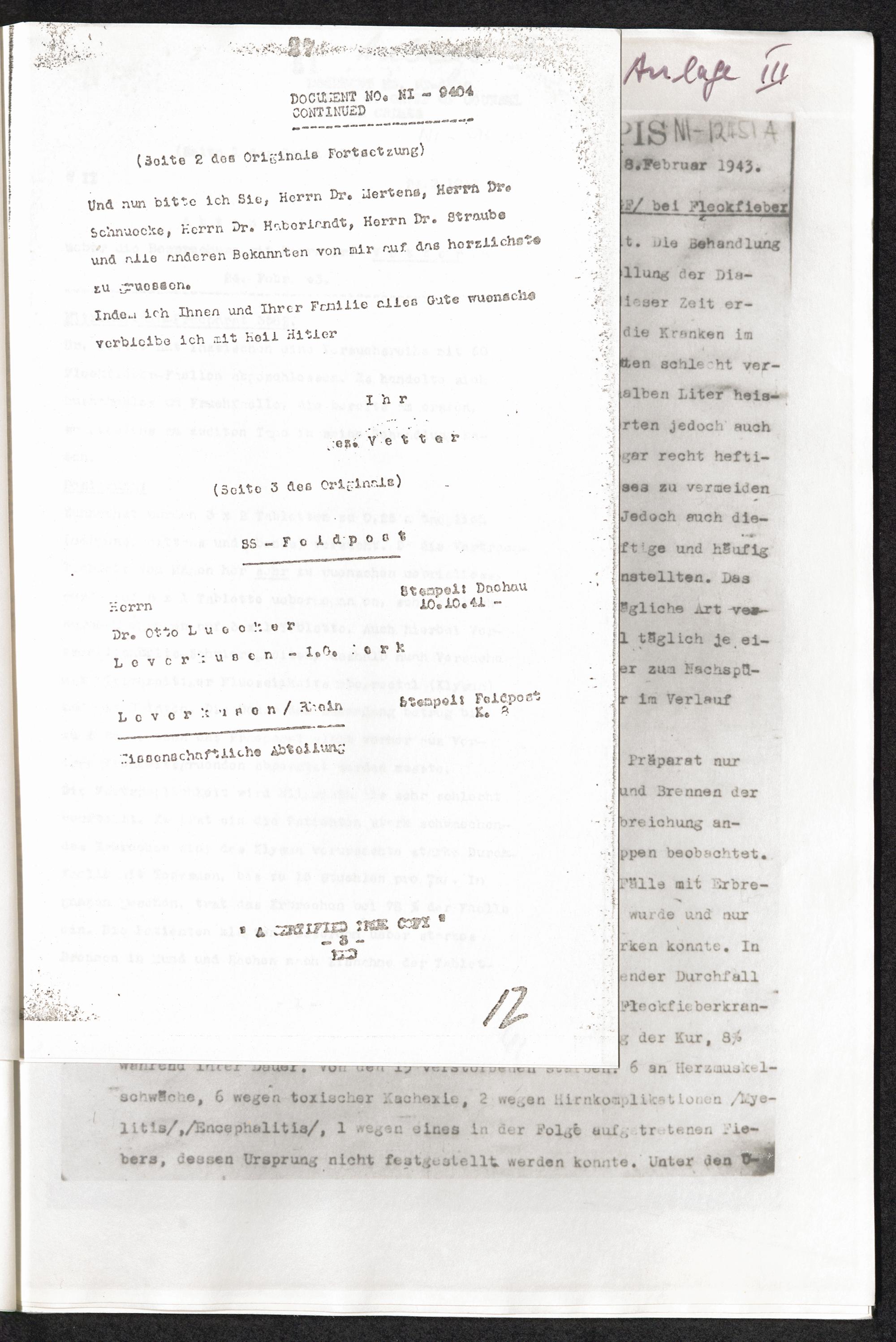 PDF  Medizinische Menschenversuche: Pharmakologische Versuche bei Fleckfieber, Pneumonie und anderen hochfiebrigen Erkrankungen