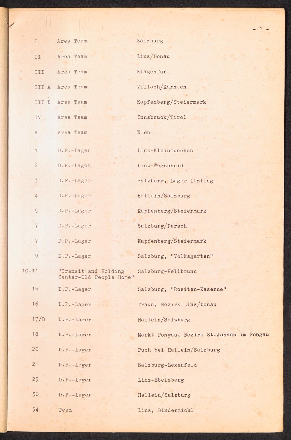 Nummern-Verzeichnis der DP-Lager in Österreich / International Tracing Service