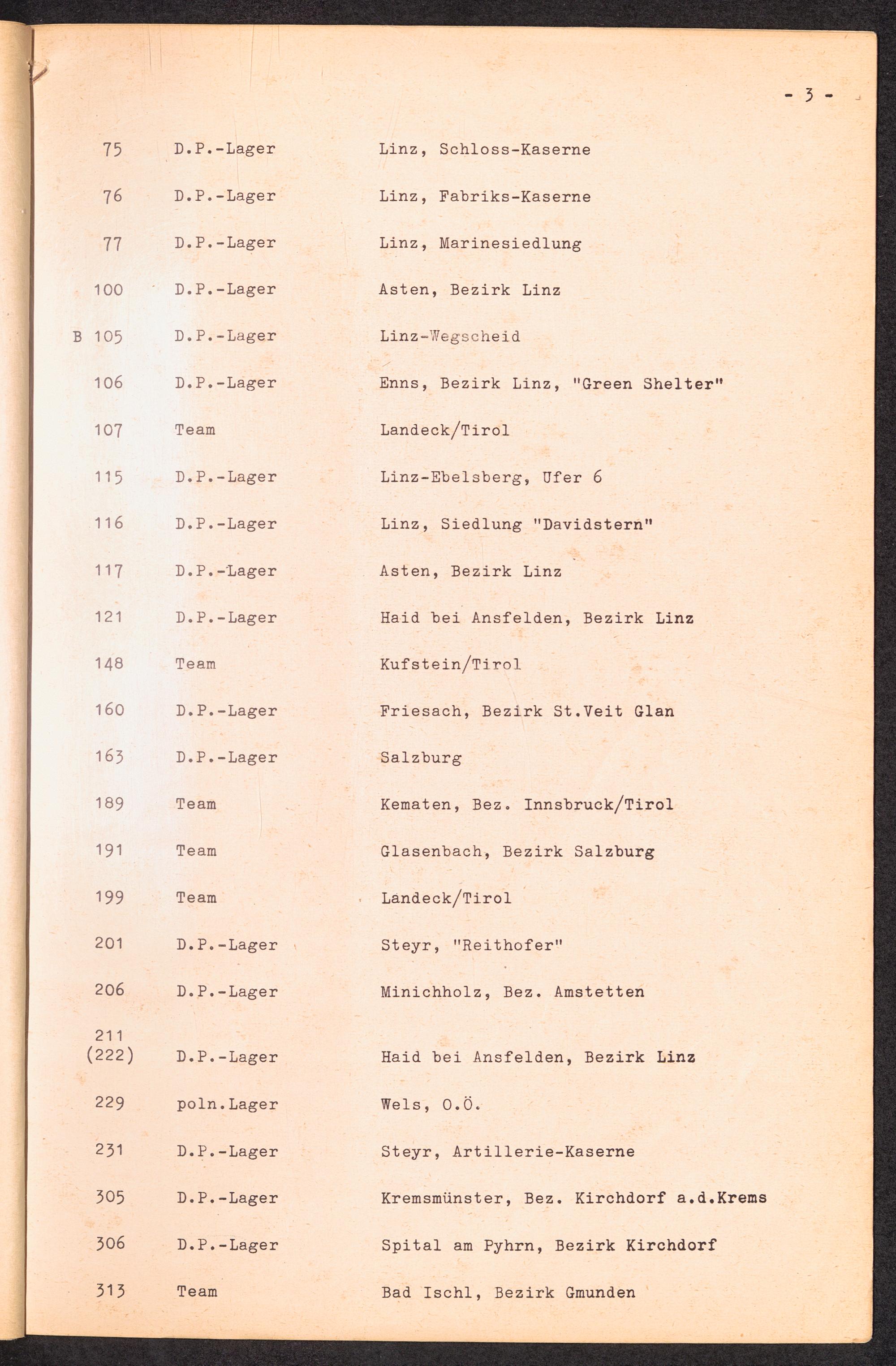 Nummern-Verzeichnis der DP-Lager in Österreich / International Tracing Service