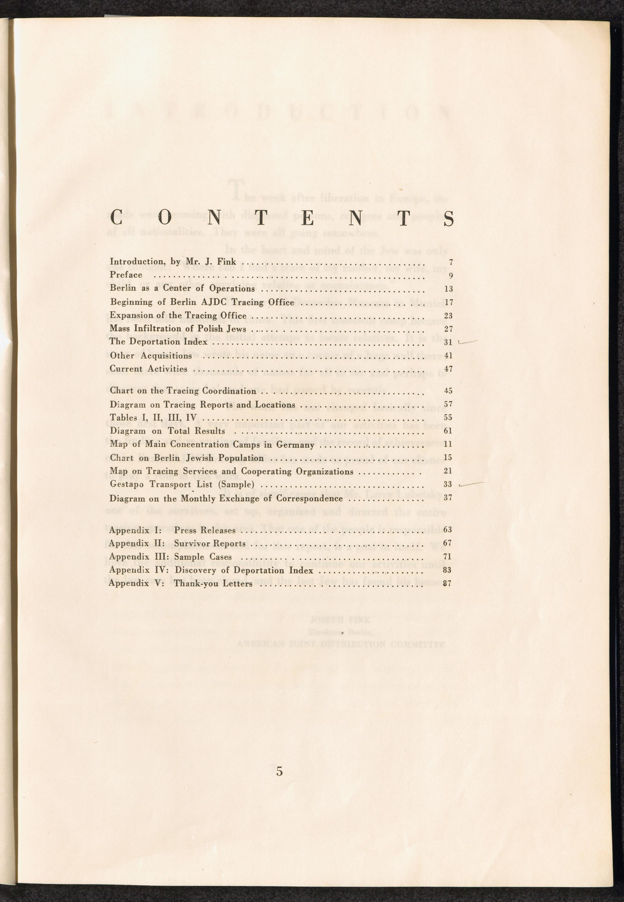 Berlin AJDC Tracing Office 1945 - 1947 Contents