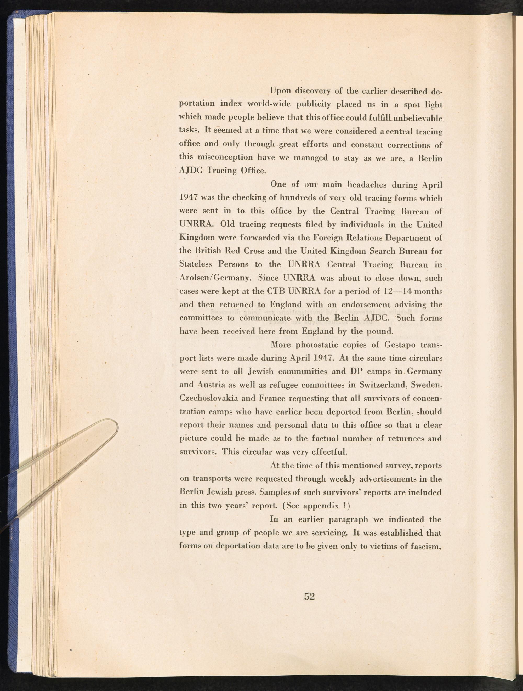 Berlin AJDC Tracing Office 1945 - 1947 Current Activities