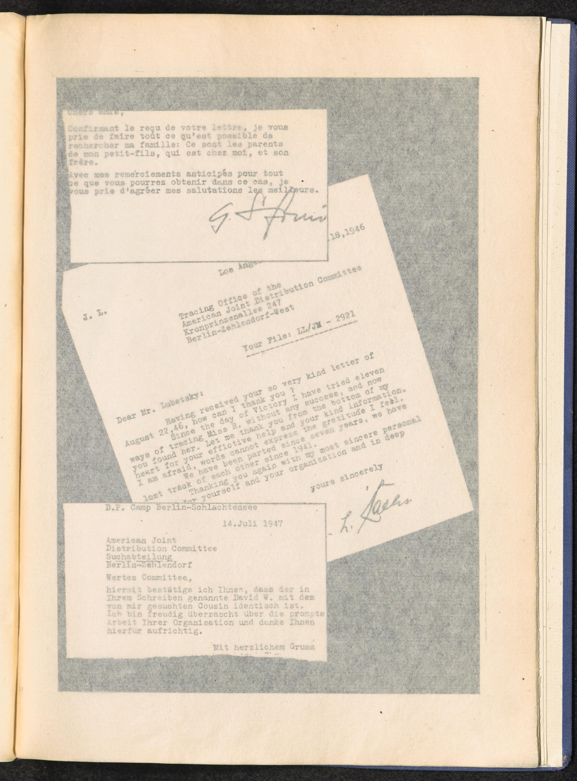 Berlin AJDC Tracing Office 1945 - 1947 Appendix V: A few Thank-you Letters