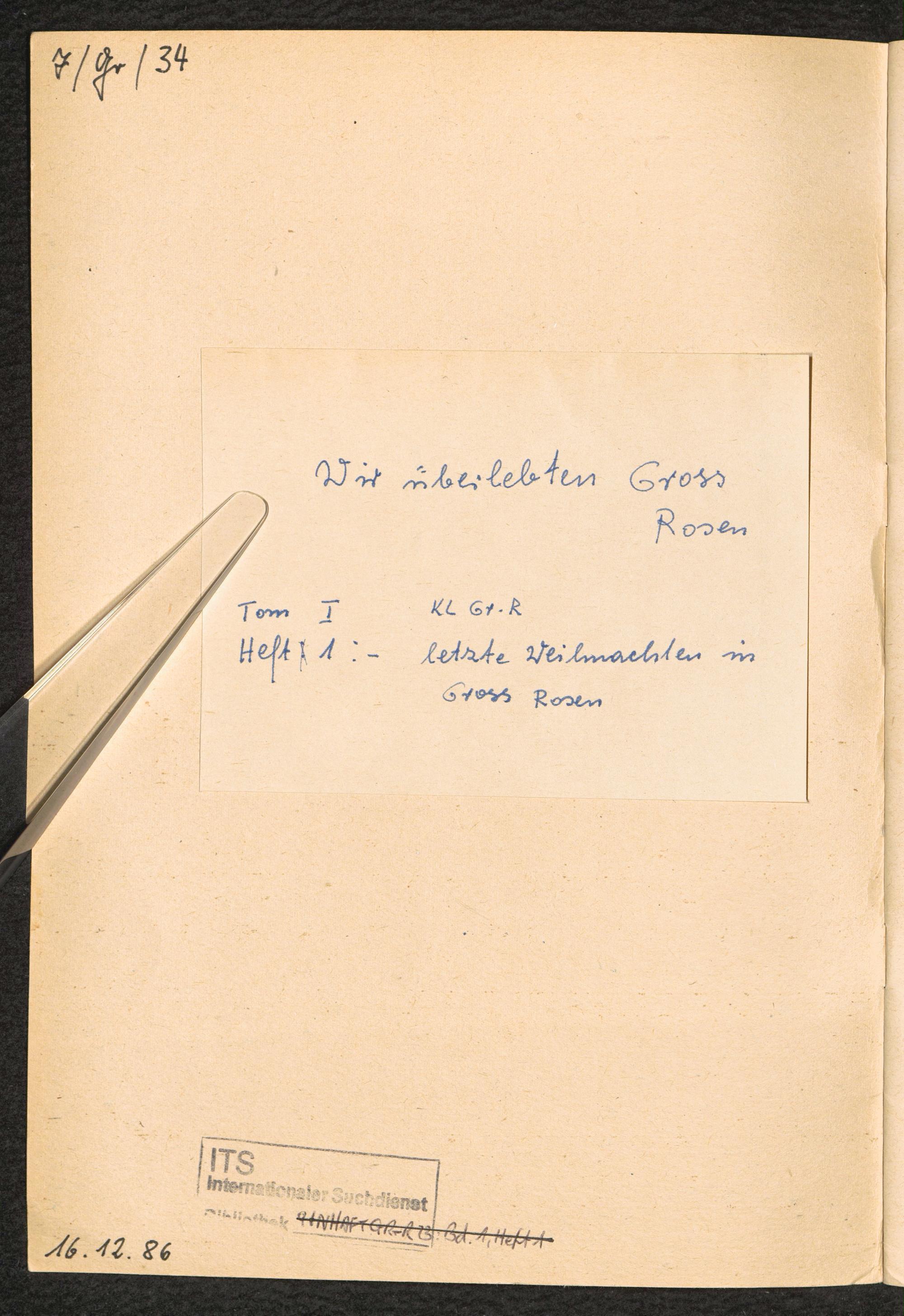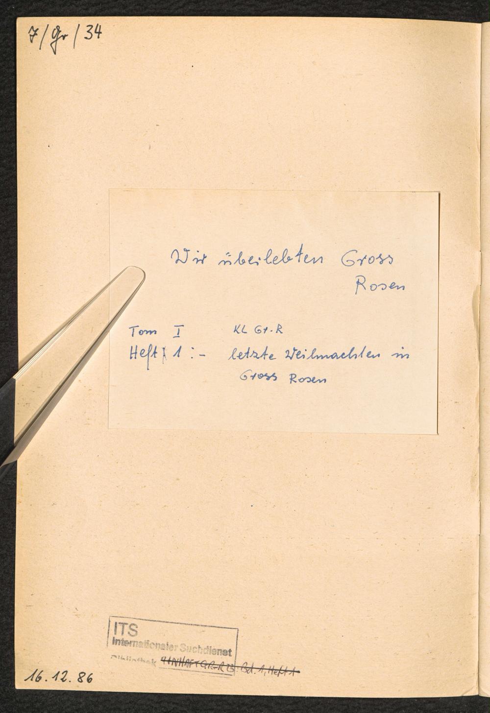 1982: Przezylismy Gross Rosen Tom I, Oboz kocentracyjny Gross-Rosen, Zeszyt 1 : Ostatnie swieta Bzego Narodzenia w Gross-Rosen