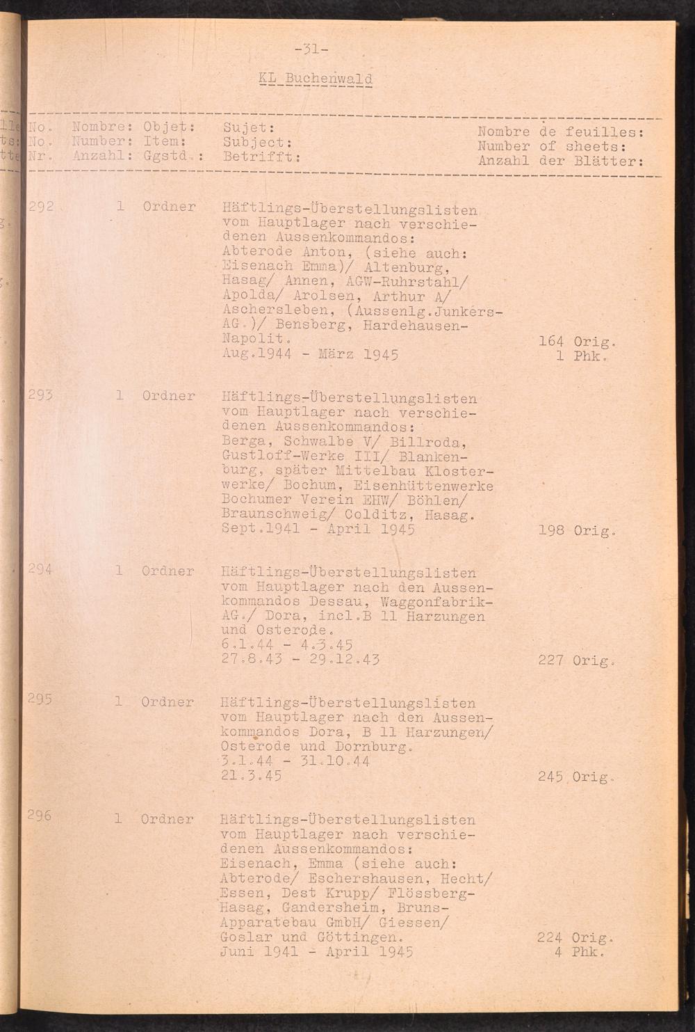 Inventar Konzentrations-Lager und Historische Abteilung, (Teil 1 - 4) und Errata / International Tracing Service (ITS)Inventaire Camps De Concentration et Section Historique (Teil 1 - 4) et Errata / International Tracing Service (ITS)Inventory Concentration Camps and Historical Section (Teil 1 - 4) and Errata / International Tracing Service (ITS)