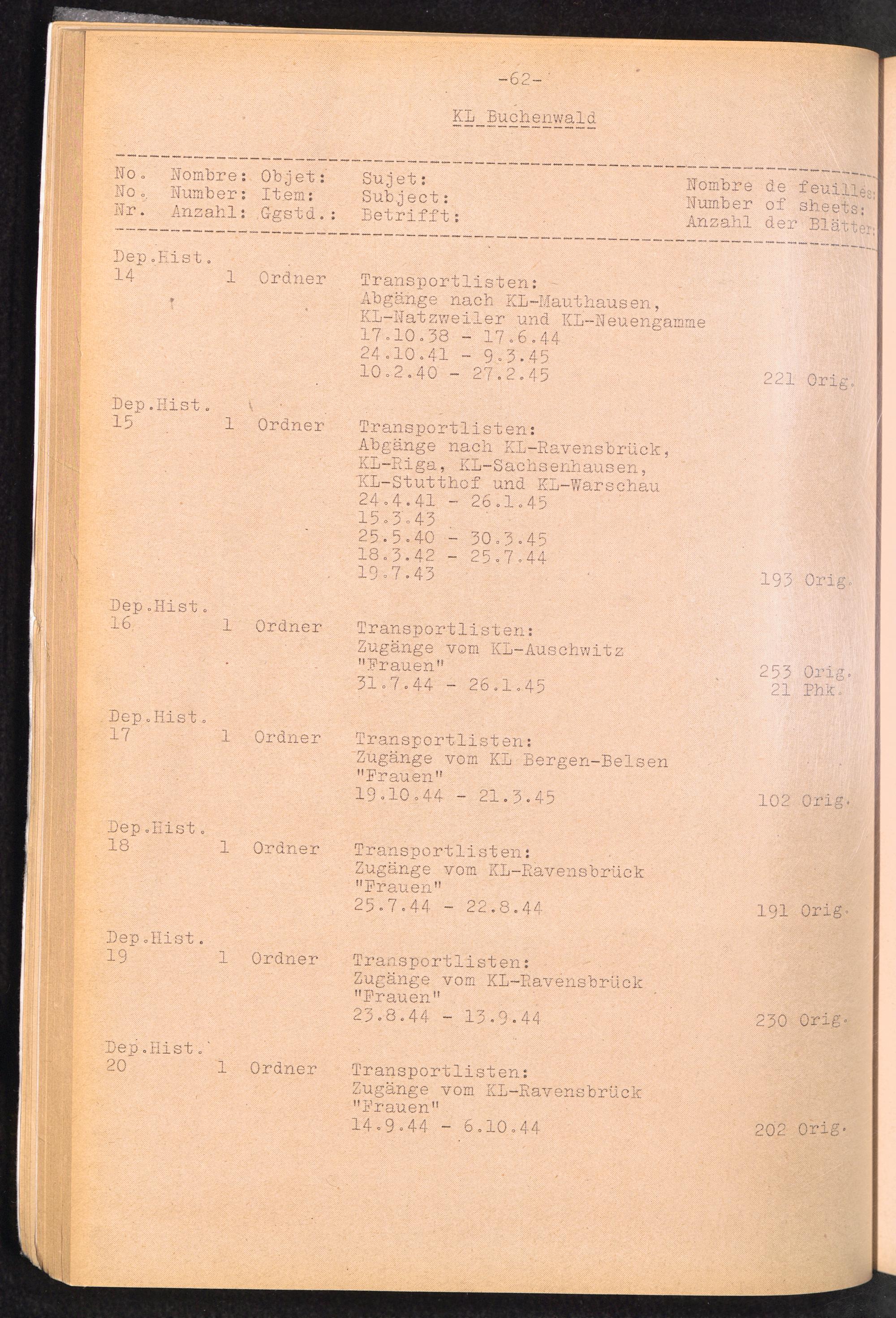 Inventar Konzentrations-Lager und Historische Abteilung, (Teil 1 - 4) und Errata / International Tracing Service (ITS)Inventaire Camps De Concentration et Section Historique (Teil 1 - 4) et Errata / International Tracing Service (ITS)Inventory Concentration Camps and Historical Section (Teil 1 - 4) and Errata / International Tracing Service (ITS)