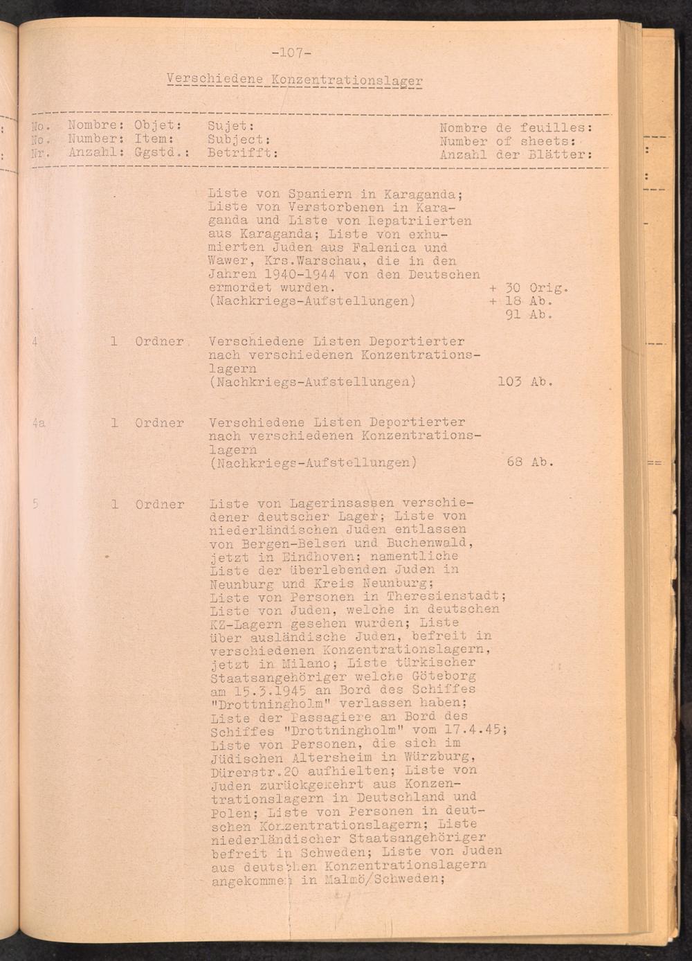 Inventar Konzentrations-Lager und Historische Abteilung, (Teil 1 - 4) und Errata / International Tracing Service (ITS)Inventaire Camps De Concentration et Section Historique (Teil 1 - 4) et Errata / International Tracing Service (ITS)Inventory Concentration Camps and Historical Section (Teil 1 - 4) and Errata / International Tracing Service (ITS)