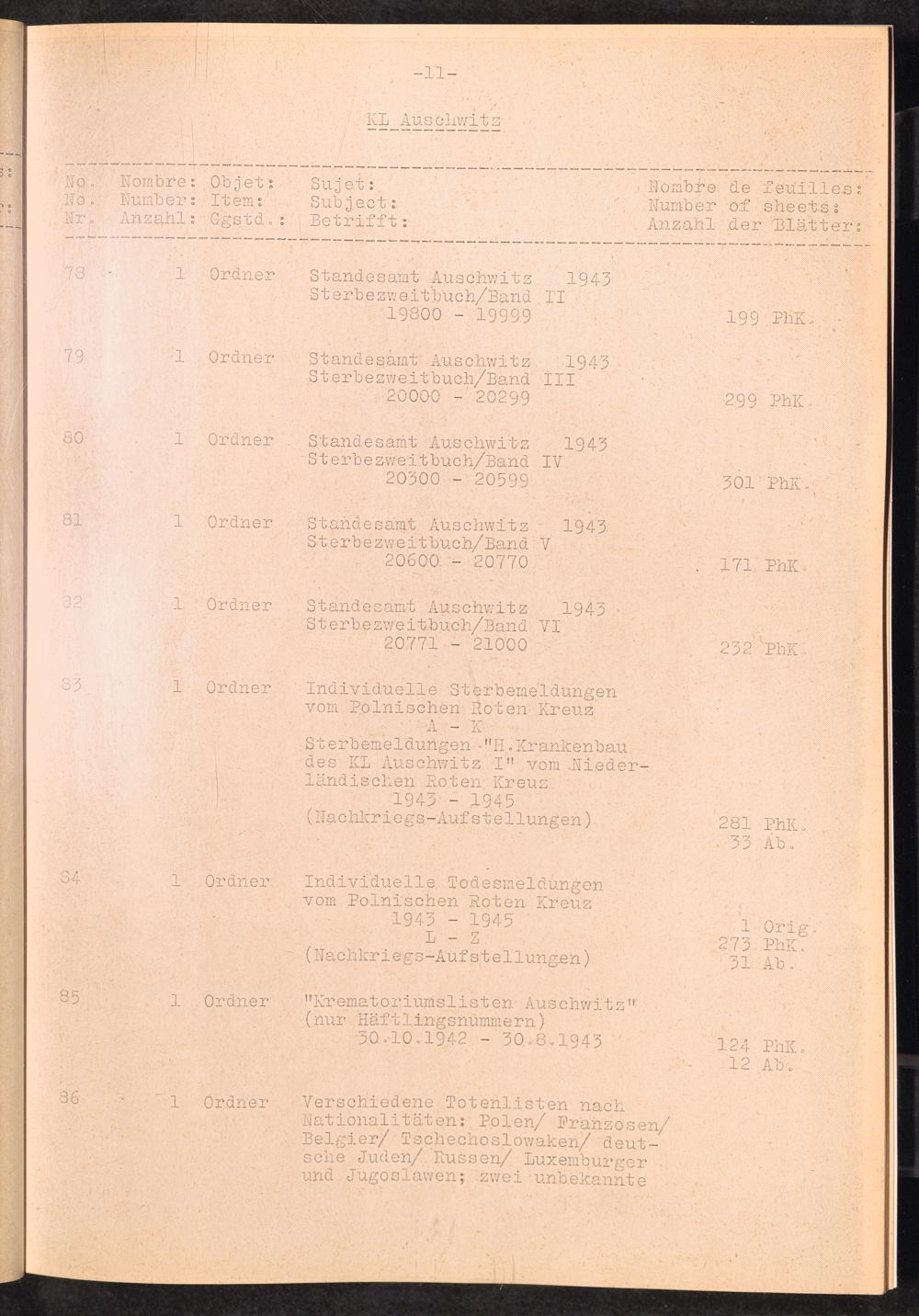 Inventar Konzentrations-Lager und Historische Abteilung, (Teil 1 - 4) und Errata / International Tracing Service (ITS)Inventaire Camps De Concentration et Section Historique (Teil 1 - 4) et Errata / International Tracing Service (ITS)Inventory Concentration Camps and Historical Section (Teil 1 - 4) and Errata / International Tracing Service (ITS)