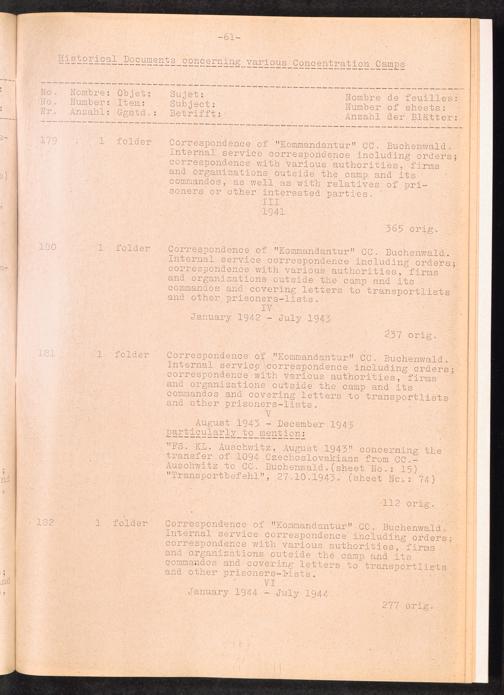 Inventar Konzentrations-Lager und Historische Abteilung, (Teil 1 - 4) und Errata / International Tracing Service (ITS)Inventaire Camps De Concentration et Section Historique (Teil 1 - 4) et Errata / International Tracing Service (ITS)Inventory Concentration Camps and Historical Section (Teil 1 - 4) and Errata / International Tracing Service (ITS)
