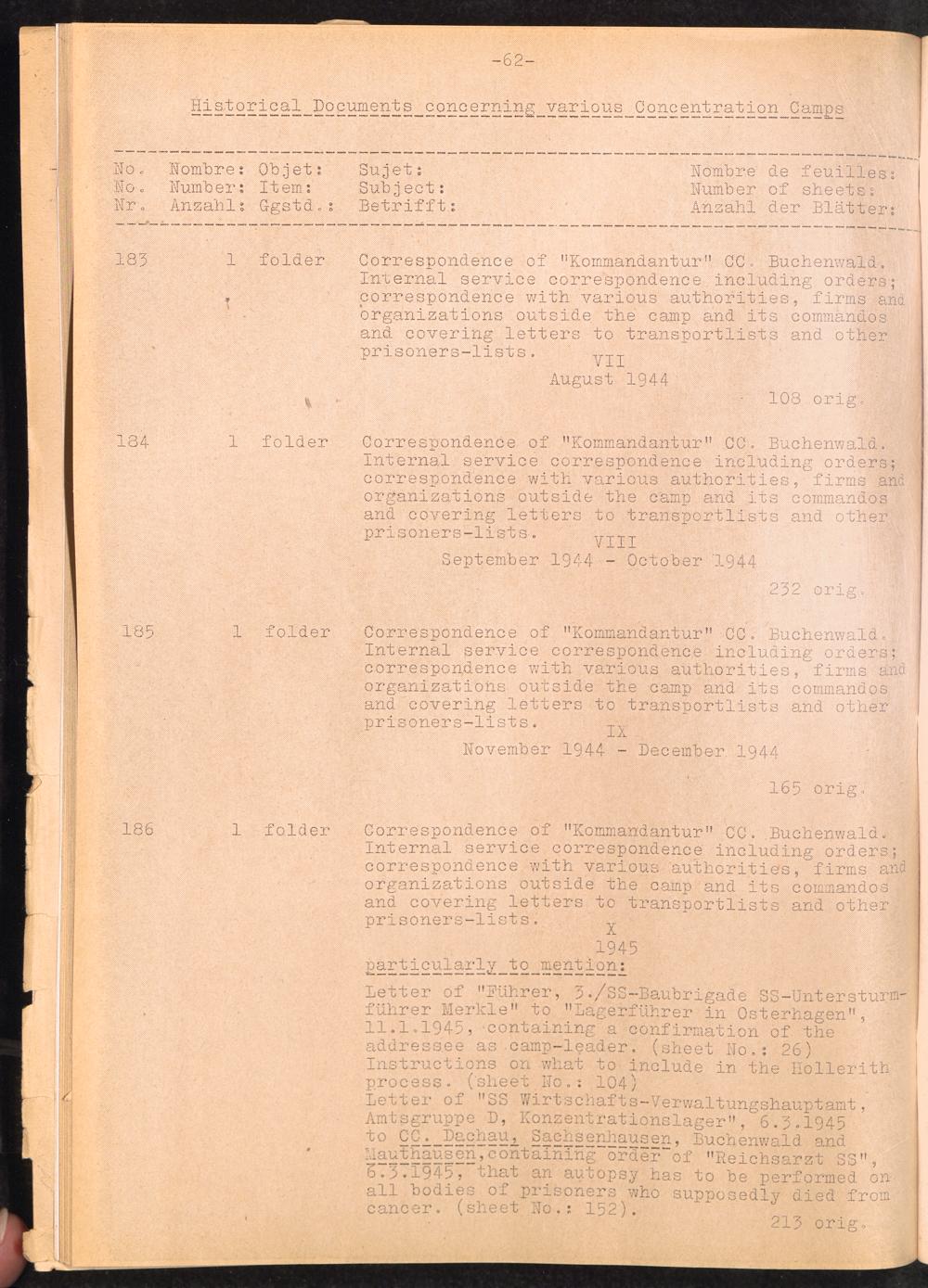Inventar Konzentrations-Lager und Historische Abteilung, (Teil 1 - 4) und Errata / International Tracing Service (ITS)Inventaire Camps De Concentration et Section Historique (Teil 1 - 4) et Errata / International Tracing Service (ITS)Inventory Concentration Camps and Historical Section (Teil 1 - 4) and Errata / International Tracing Service (ITS)