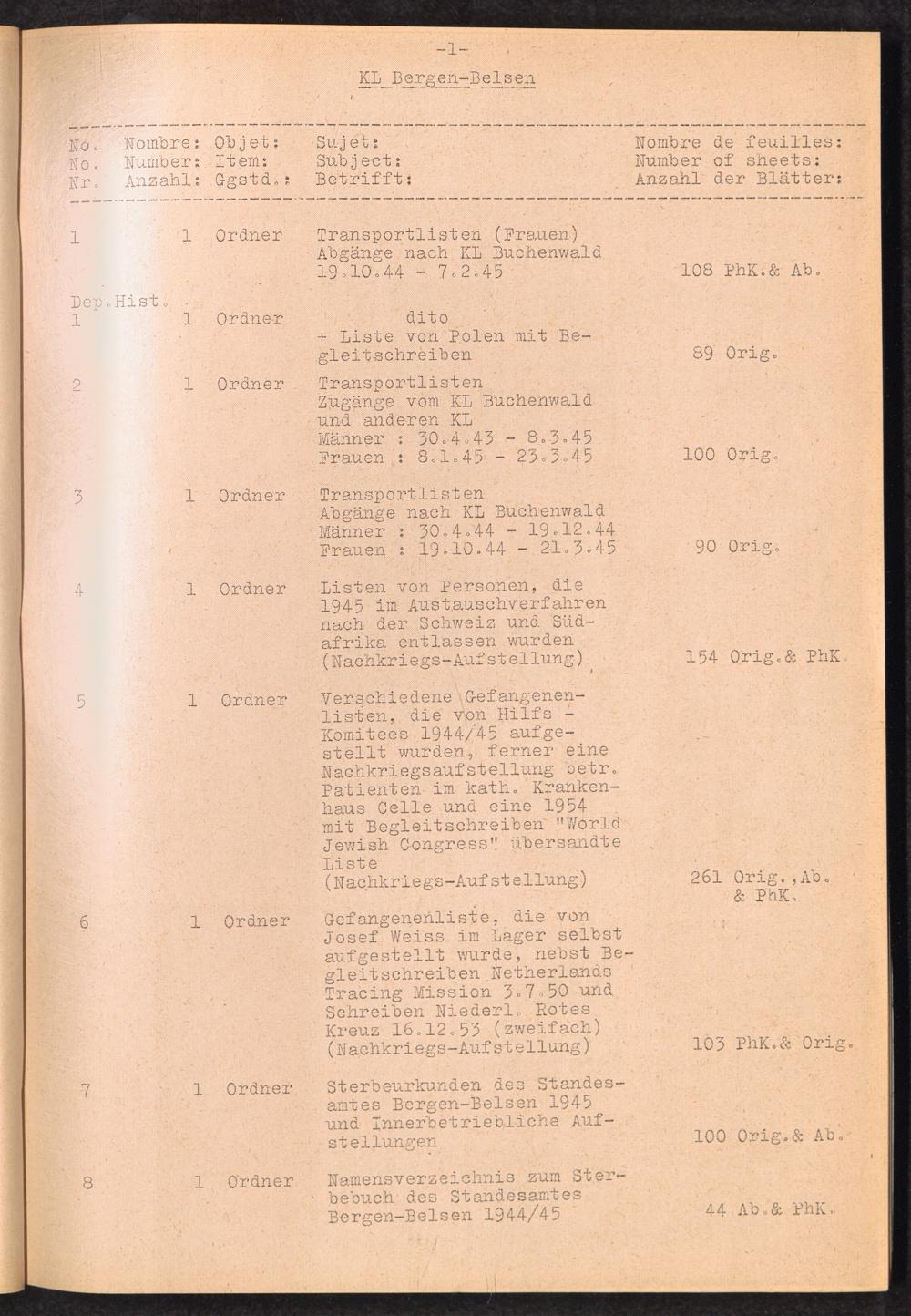 Inventar Konzentrations-Lager und Historische Abteilung, (Teil 1 - 4) und Errata / International Tracing Service (ITS)Inventaire Camps De Concentration et Section Historique (Teil 1 - 4) et Errata / International Tracing Service (ITS)Inventory Concentration Camps and Historical Section (Teil 1 - 4) and Errata / International Tracing Service (ITS)