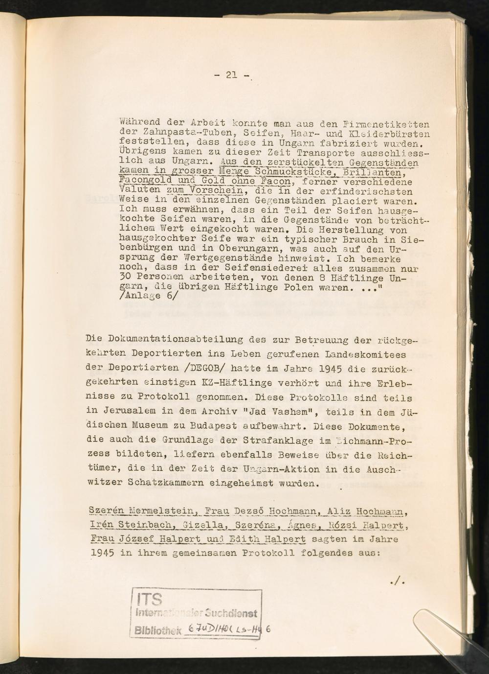 Entziehung der Wertgegenstände ungarischer Verfolgter in den KZ-Lagern : Erwiderung auf die Entscheidung des Kammergerichtes Berlin, 18 W 2492/2493/67 vom 27.6.1969 / Allgemeine Wertverkehrs-Bank A.G.