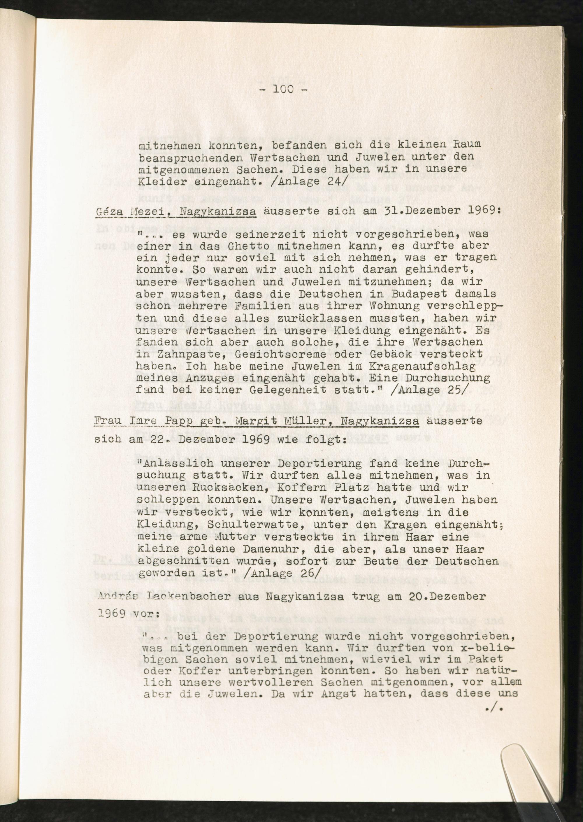 Entziehung der Wertgegenstände ungarischer Verfolgter in den KZ-Lagern : Erwiderung auf die Entscheidung des Kammergerichtes Berlin, 18 W 2492/2493/67 vom 27.6.1969 / Allgemeine Wertverkehrs-Bank A.G.