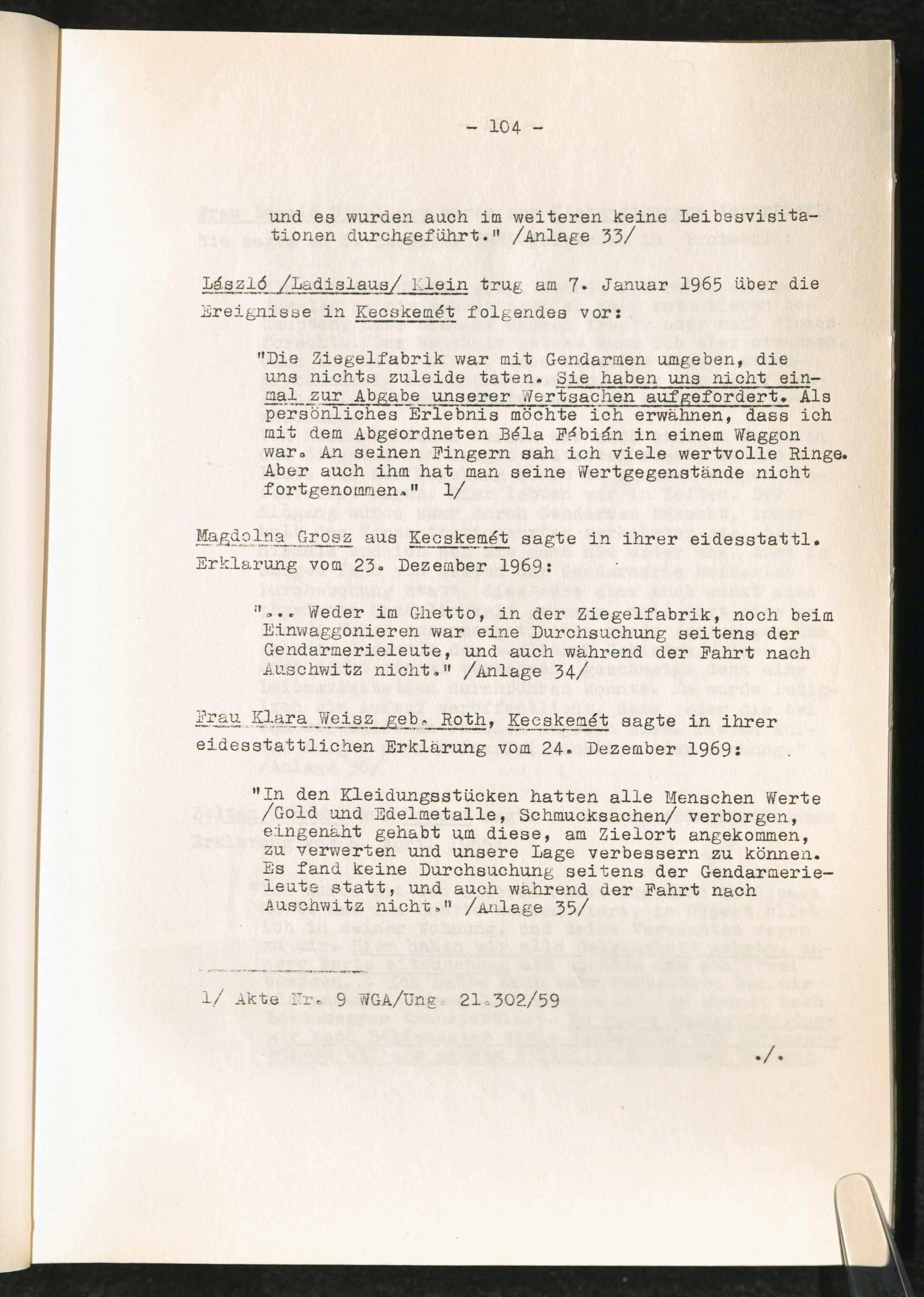 Entziehung der Wertgegenstände ungarischer Verfolgter in den KZ-Lagern : Erwiderung auf die Entscheidung des Kammergerichtes Berlin, 18 W 2492/2493/67 vom 27.6.1969 / Allgemeine Wertverkehrs-Bank A.G.
